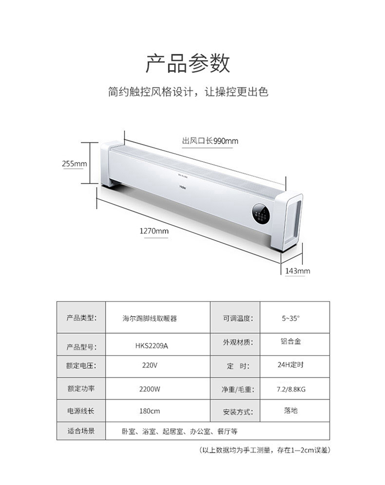 海尔(Haier)踢脚线取暖器(单位:台)HK2219(机械款) 黑色
