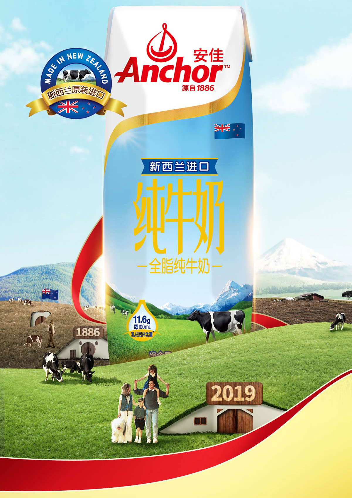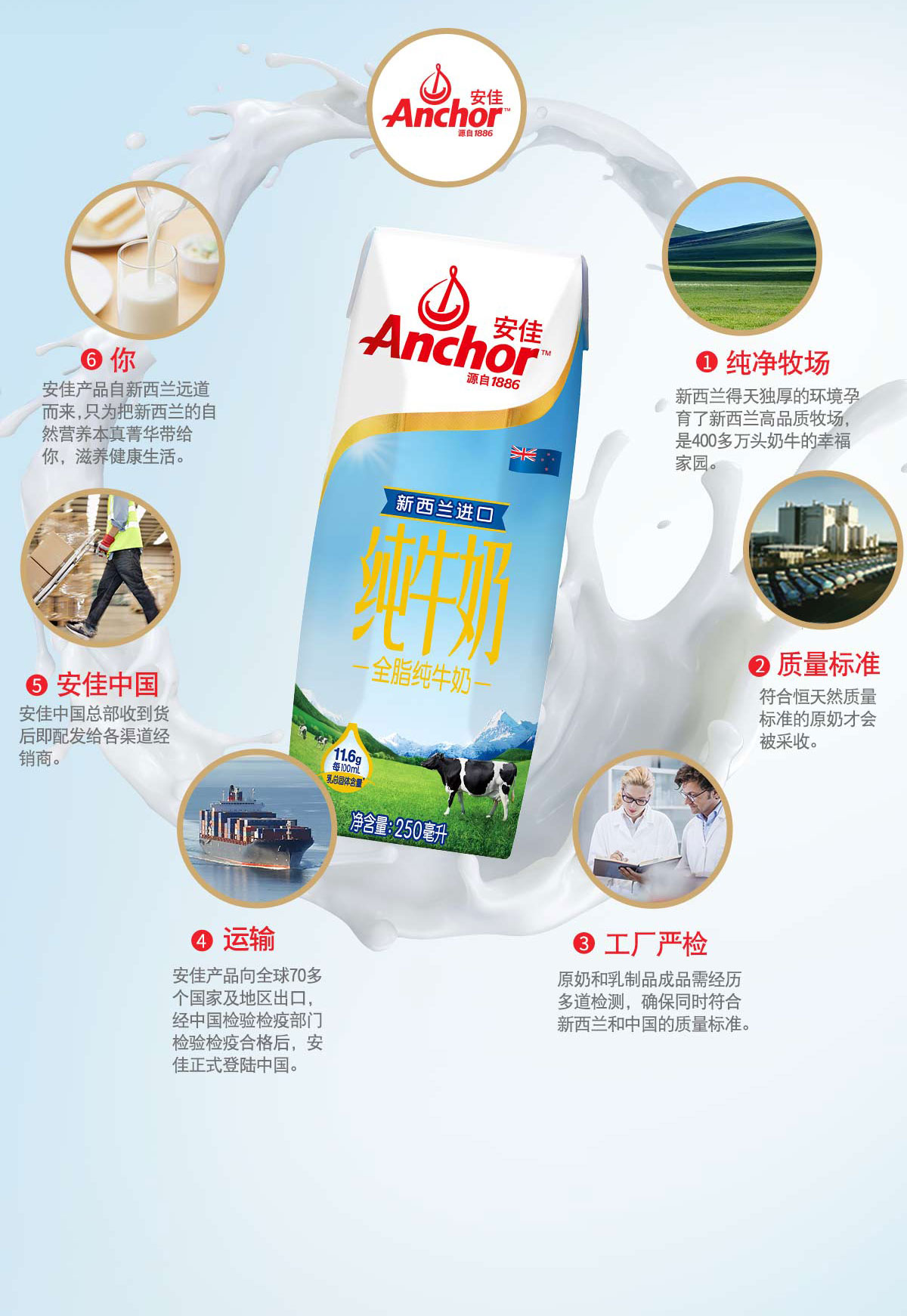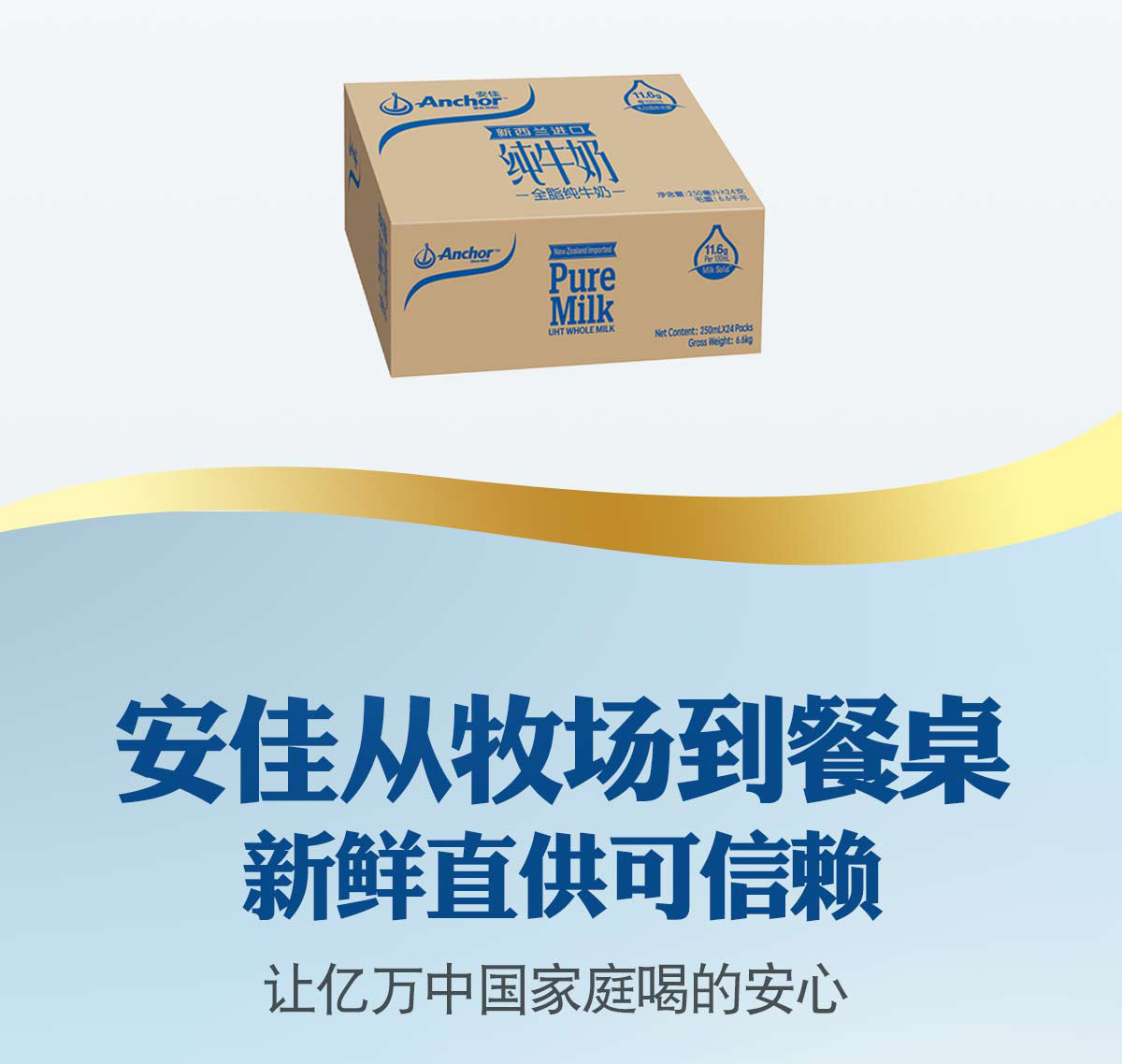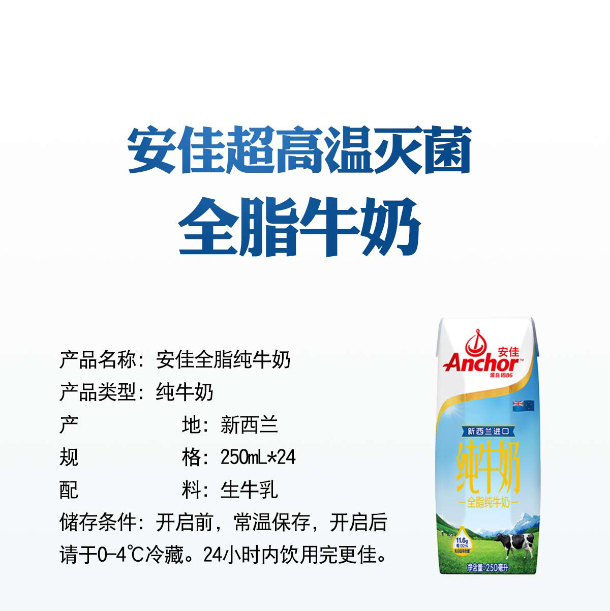 安佳(ANCHOR) 全脂纯牛奶250ml*24盒 新西兰进口 棕色