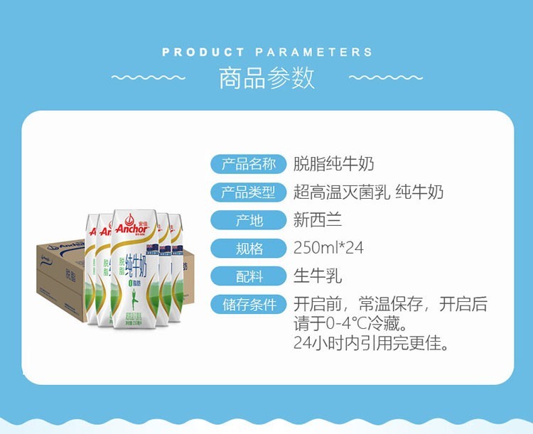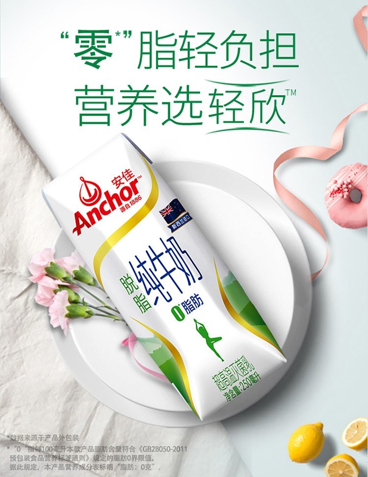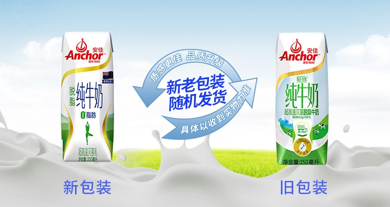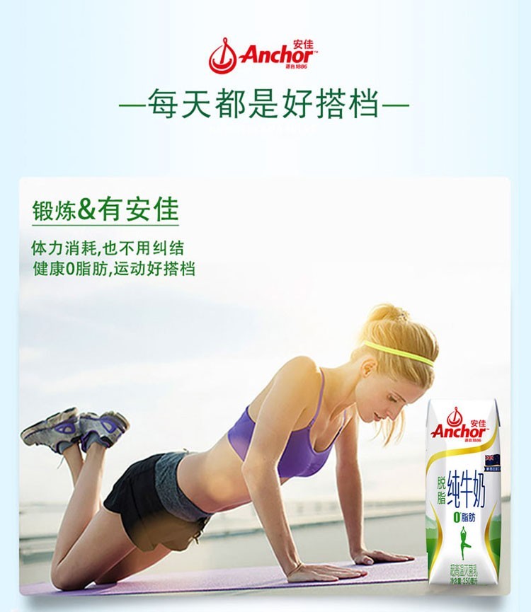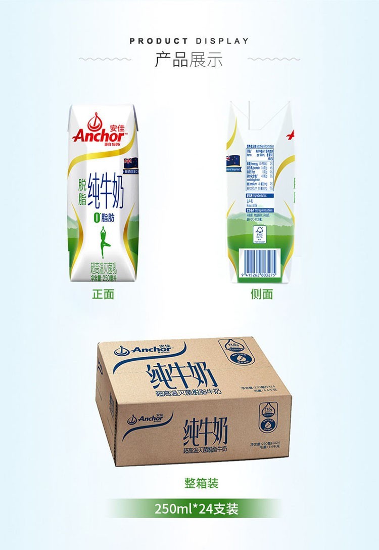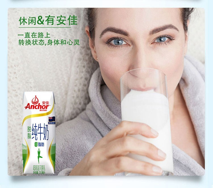 安佳(ANCHOR)脱脂纯牛奶250ml*24盒 新西兰进口 白色