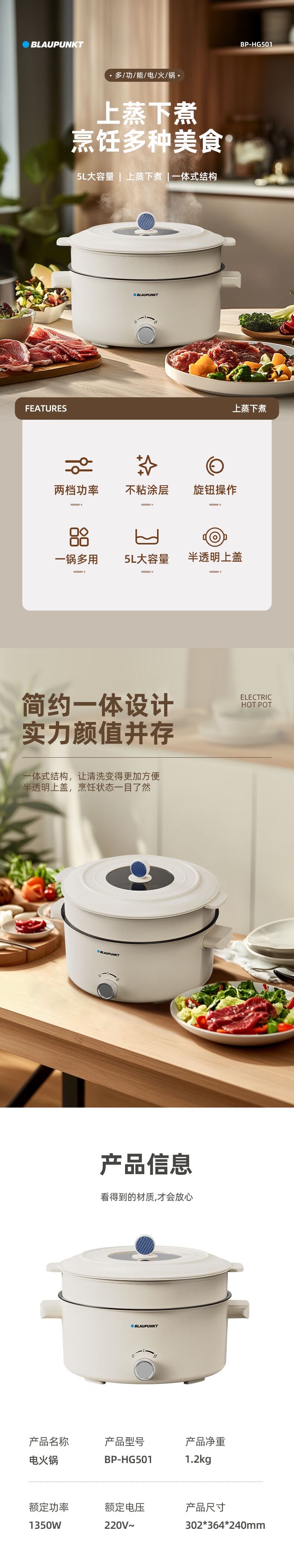 蓝宝(BLAUPUNKT)电火锅 5L BP-HG501(单位:台) 白色