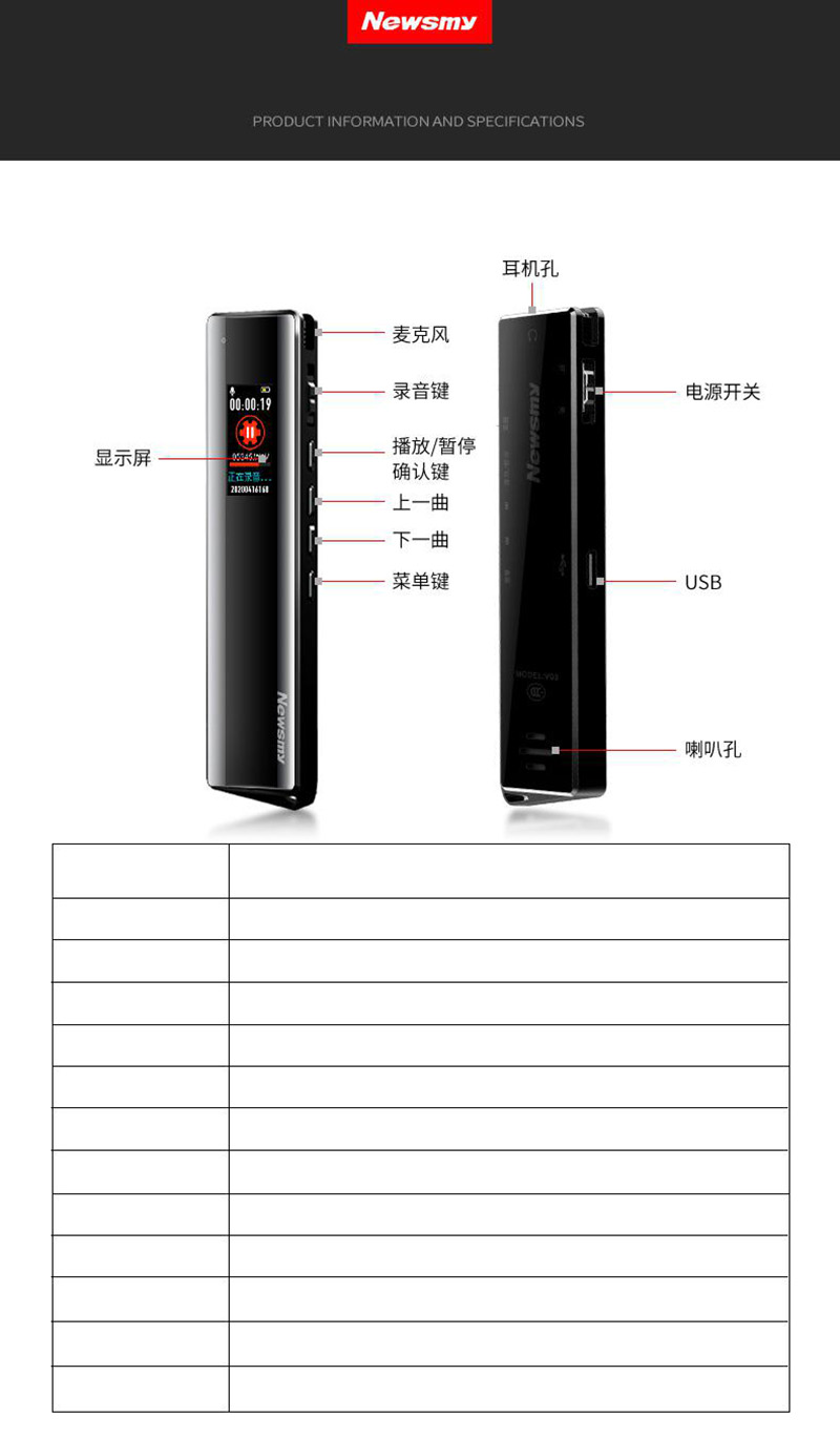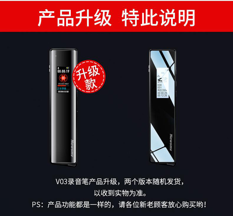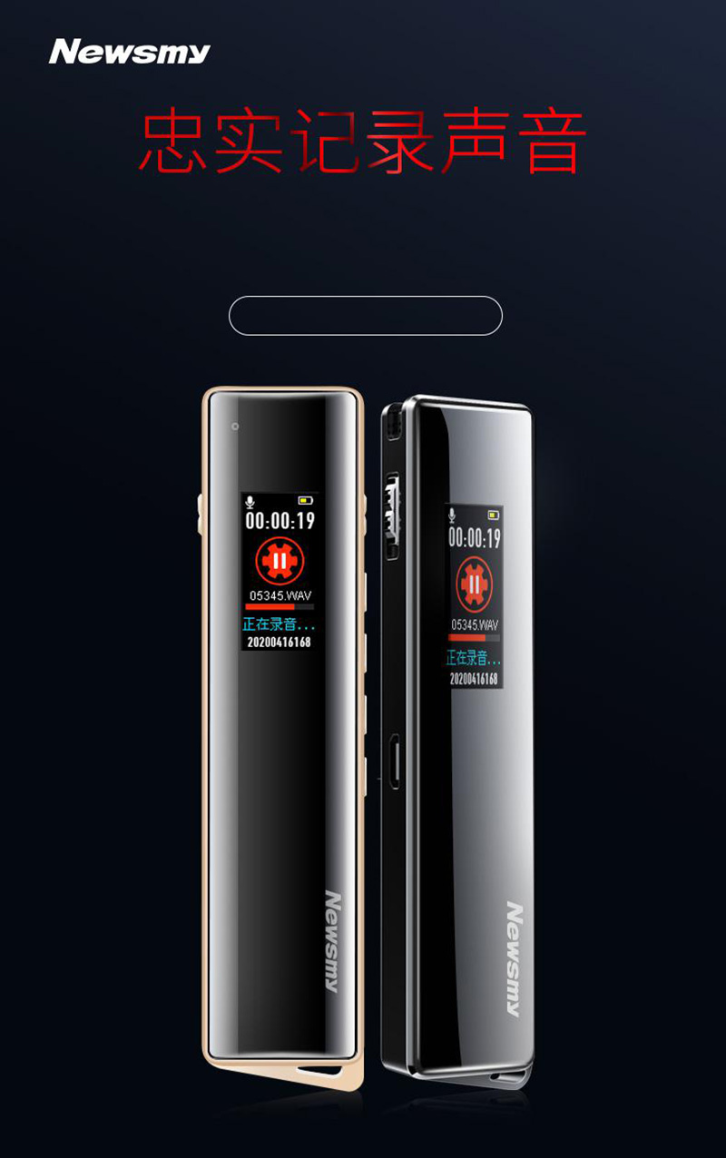 纽曼 NEWSMY 录音笔 V03 16G 专业普及微型高清降噪 学习/会议采访取证适用 MP3播放器 金色 单位 支 金色