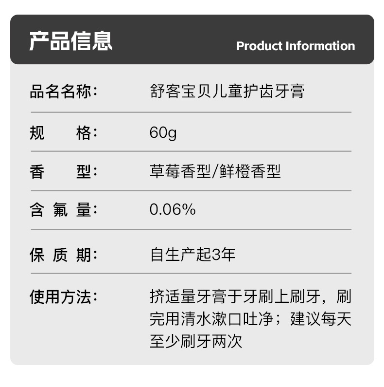 舒客儿童护齿牙膏60g/支 (单位: 支) 白色
