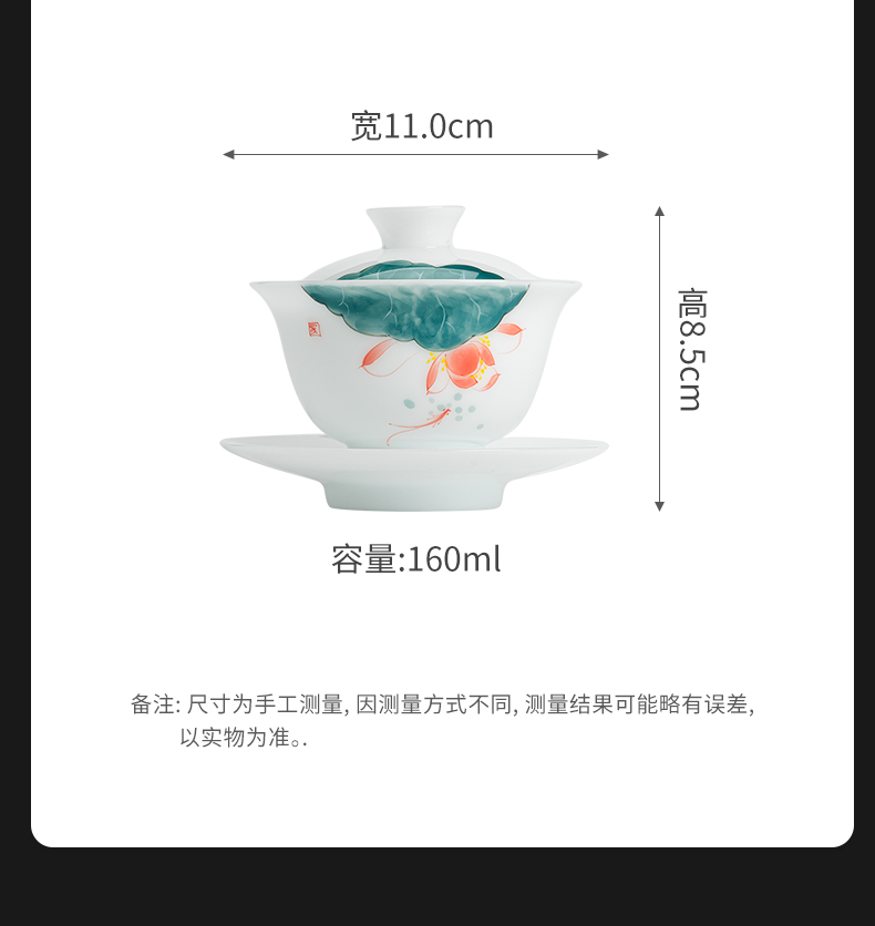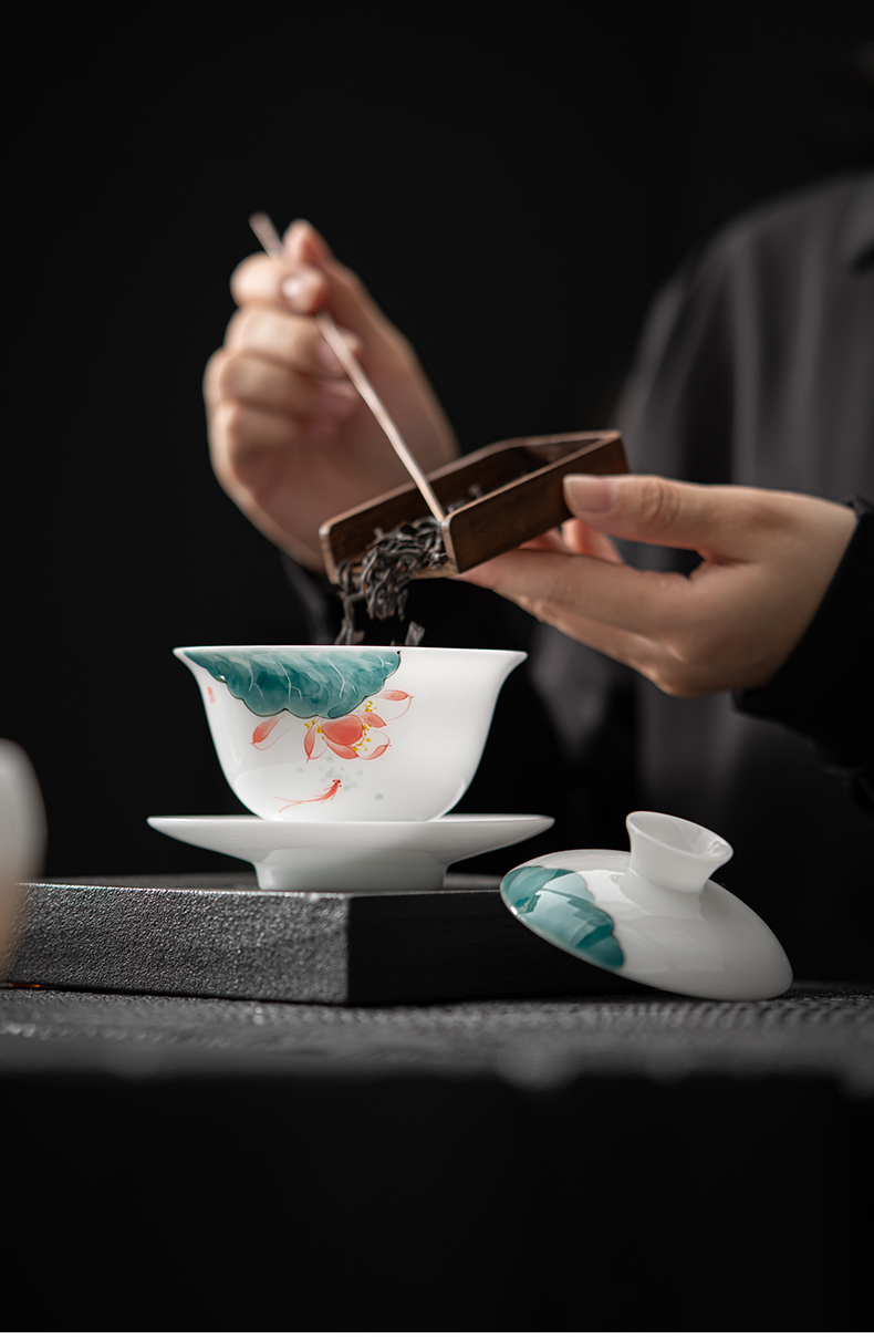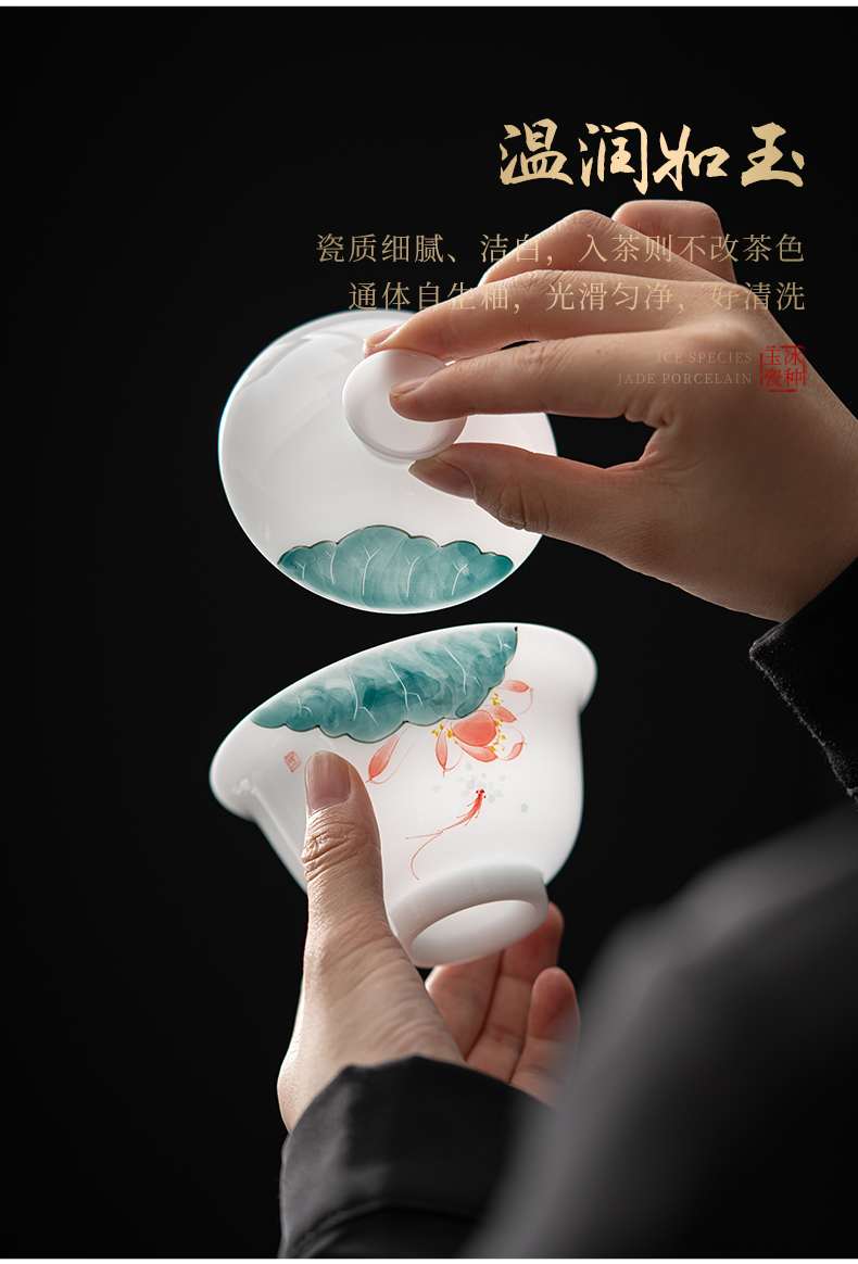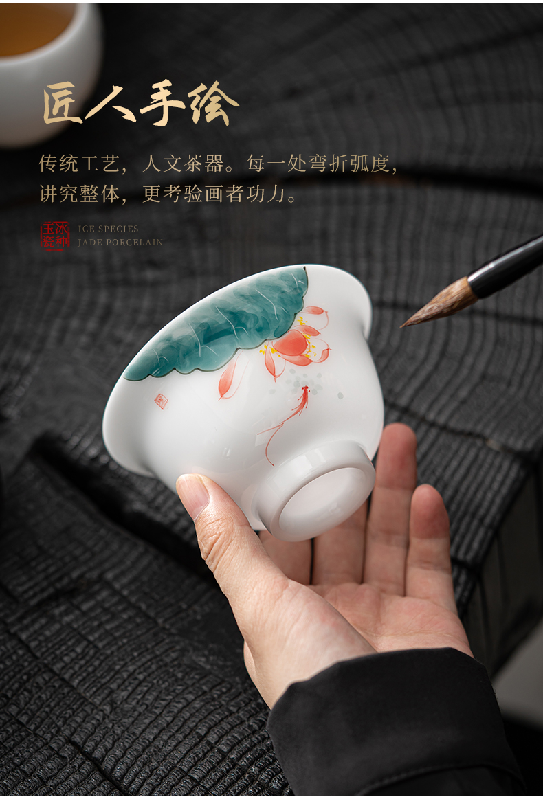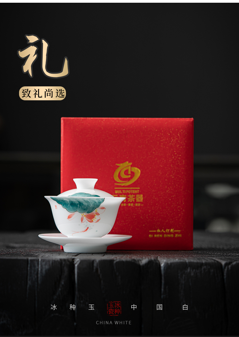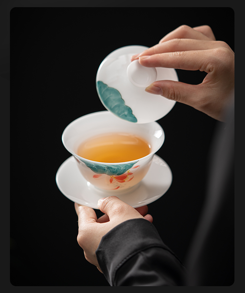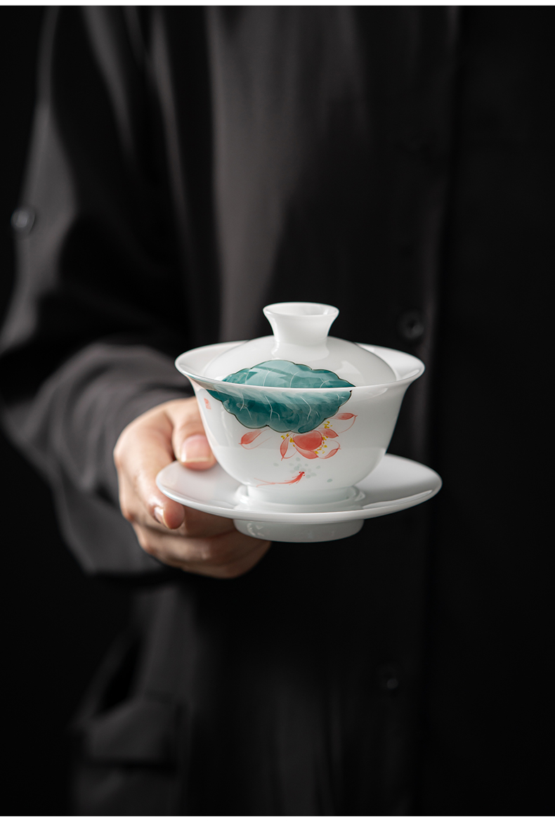 MULTIPOTENT JHY08-02 160ml 手绘鱼戏荷莲盖碗 白色(单位:套)