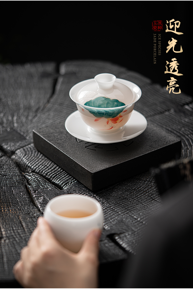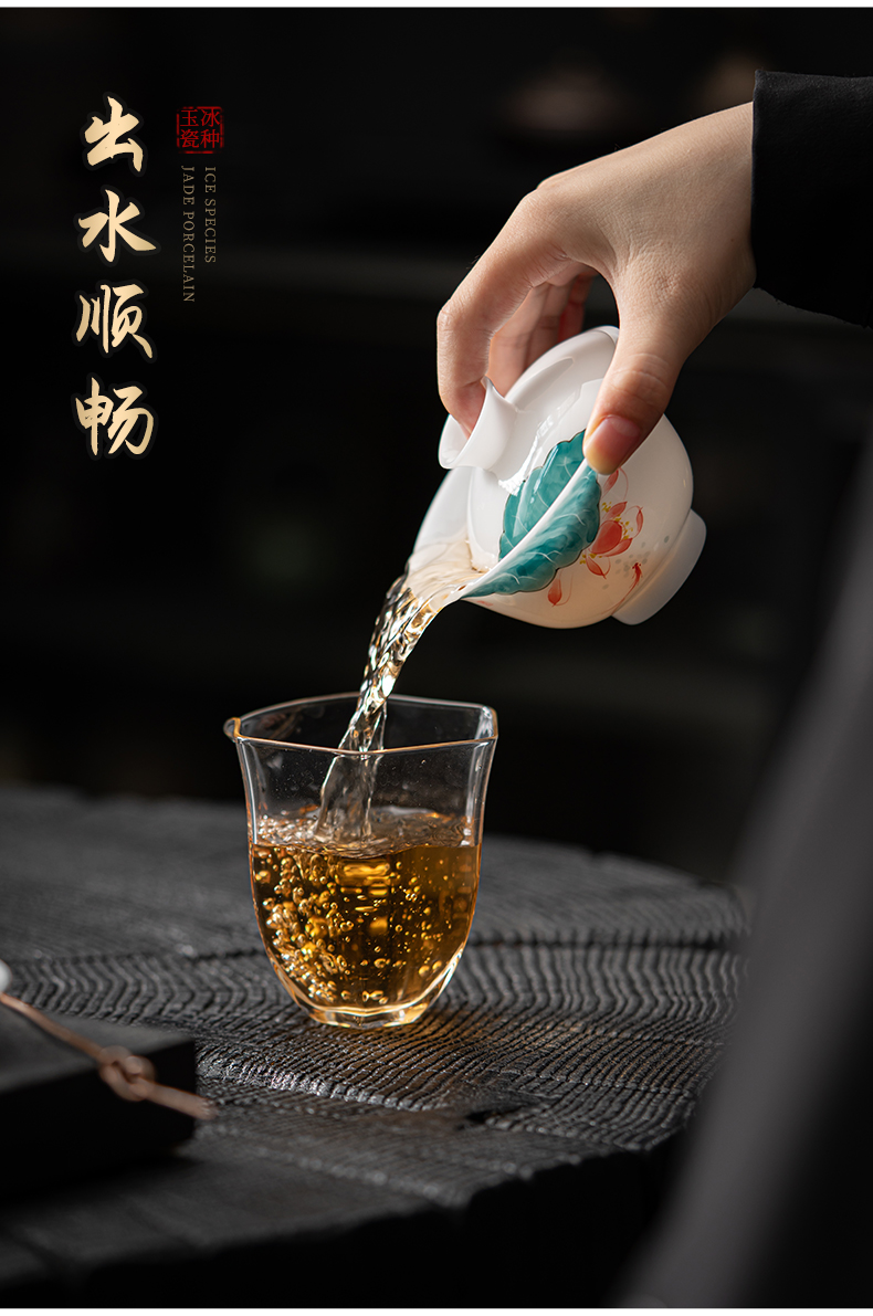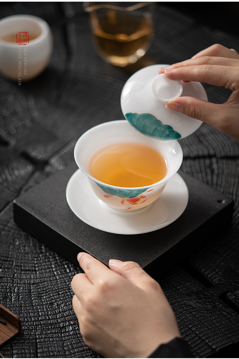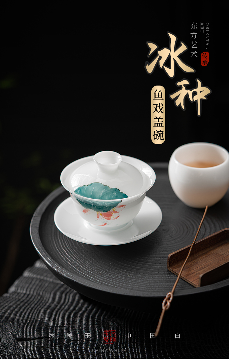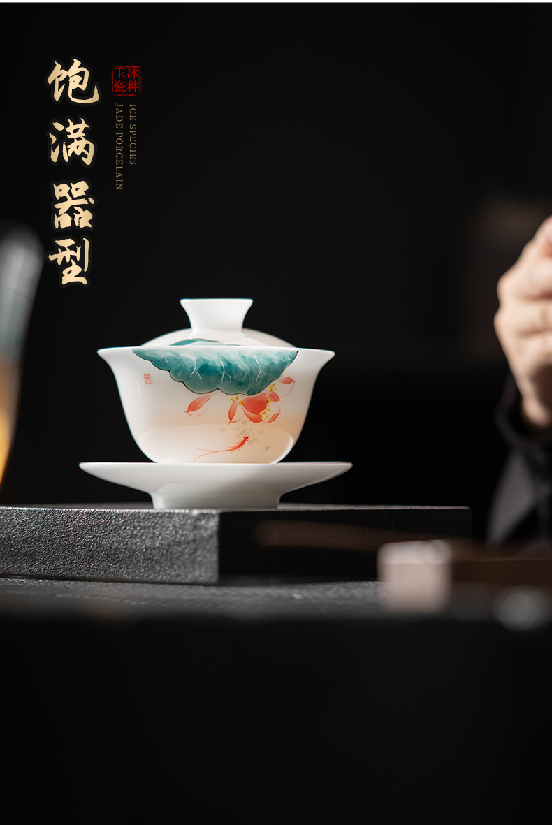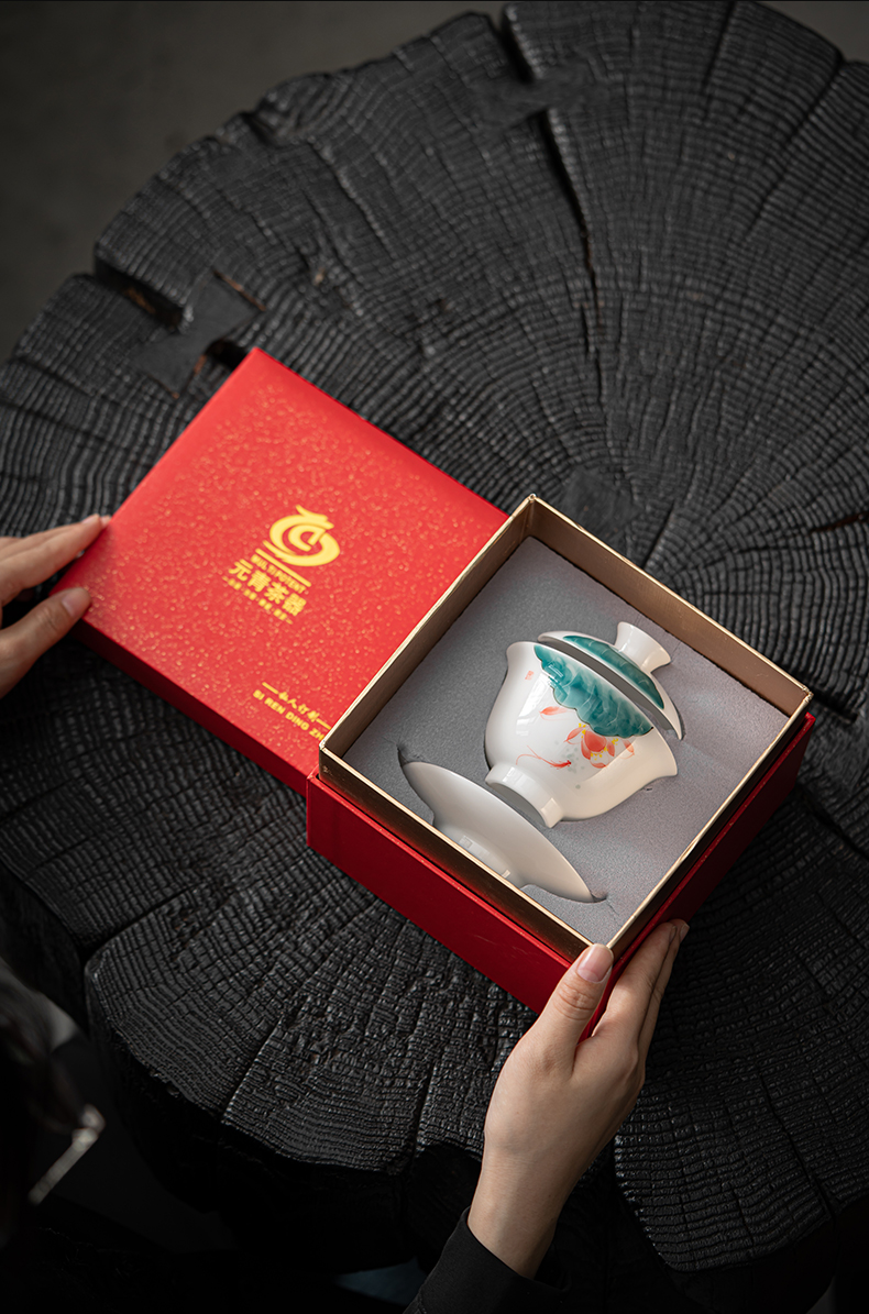 MULTIPOTENT JHY08-02 160ml 手绘鱼戏荷莲盖碗 白色(单位:套)