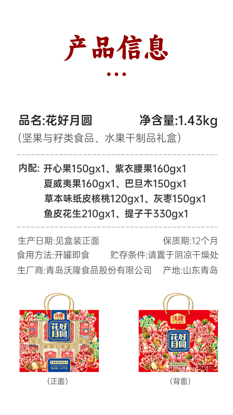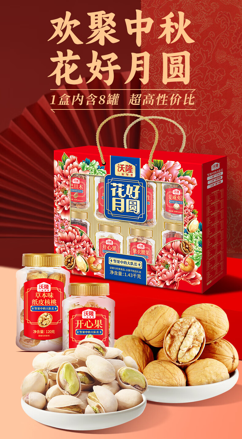 沃隆花好月圆坚果礼盒1430g(单位:盒) 红色