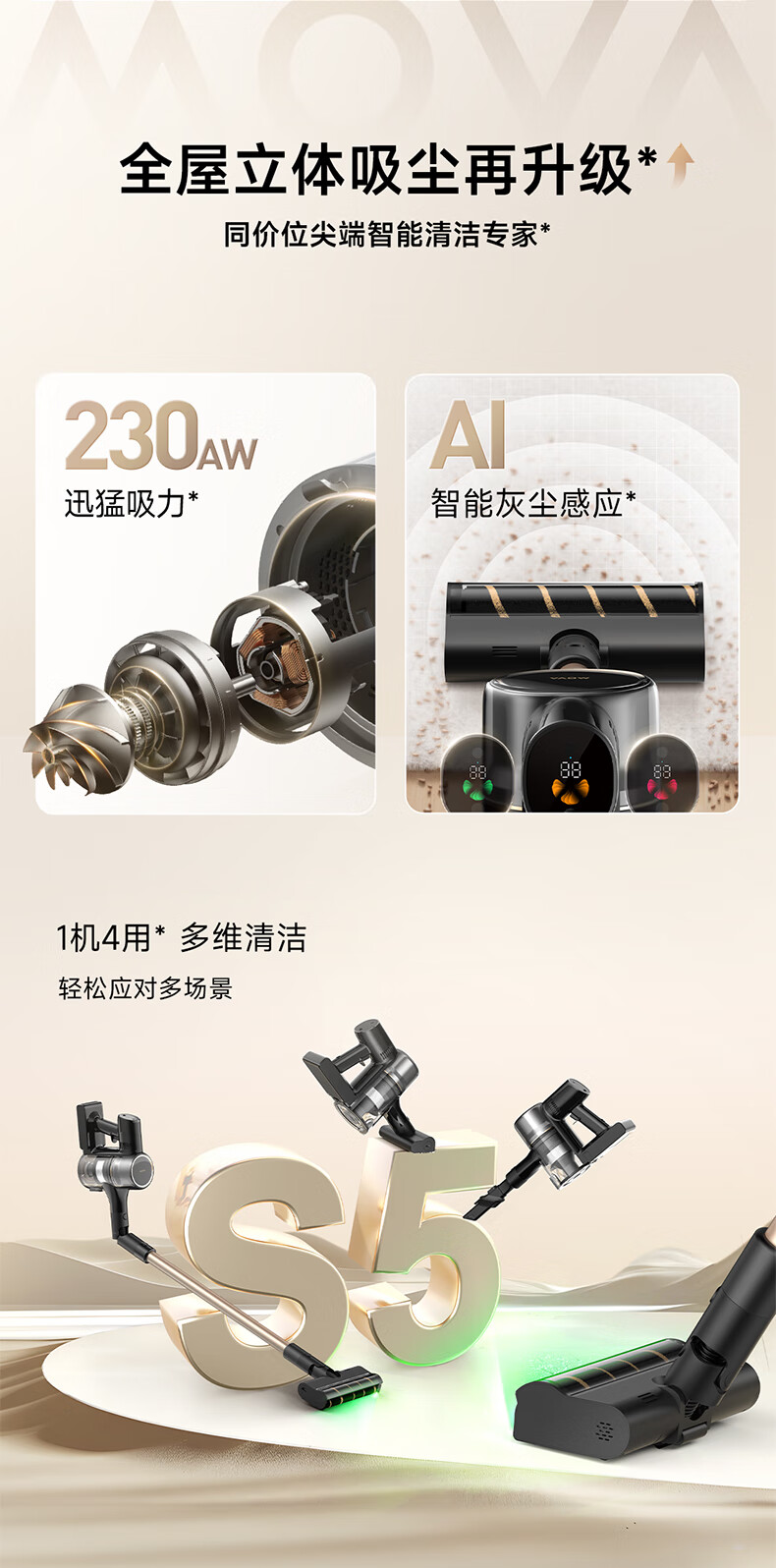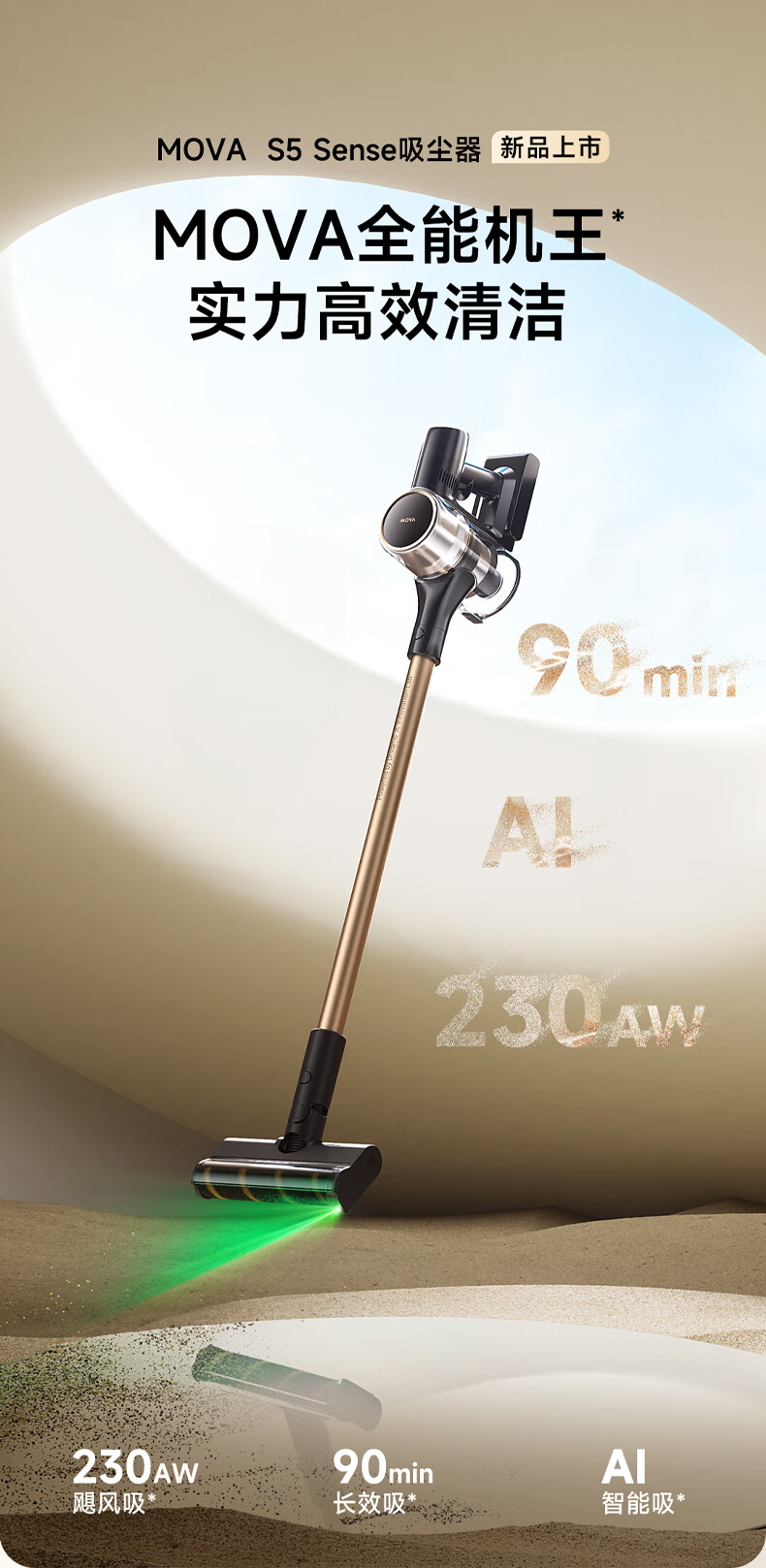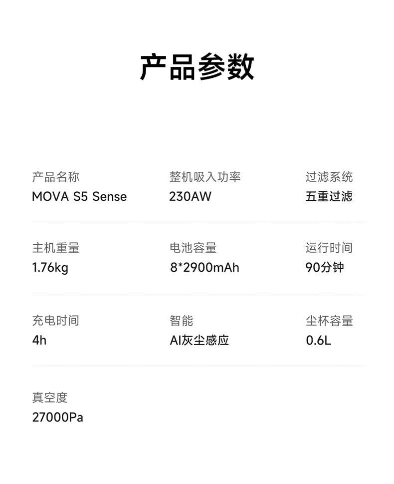 Mova S5 Sense吸尘器 90分钟 无线手持吸尘器家用 黑色(单位:台)