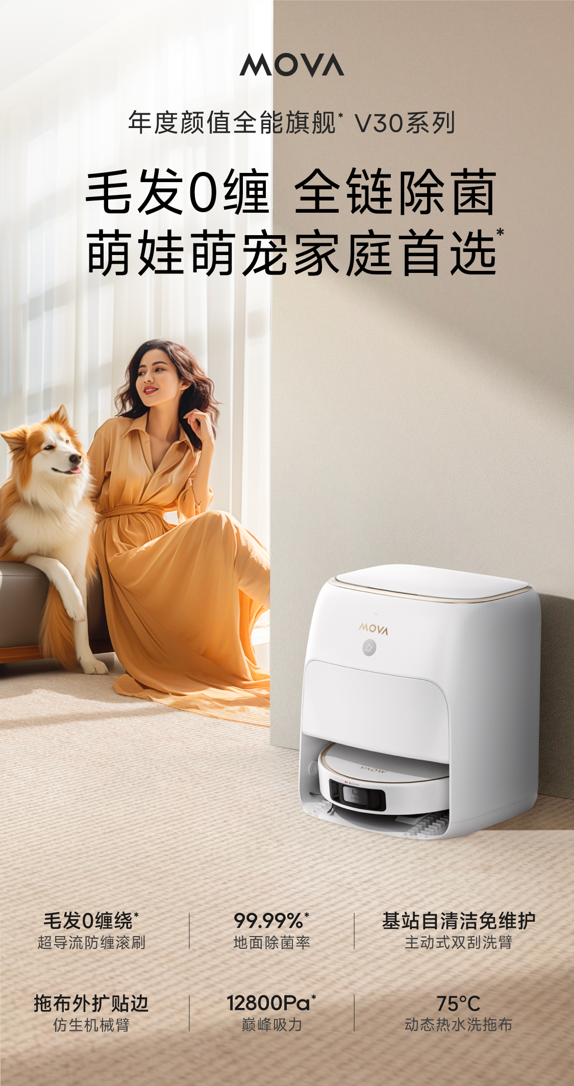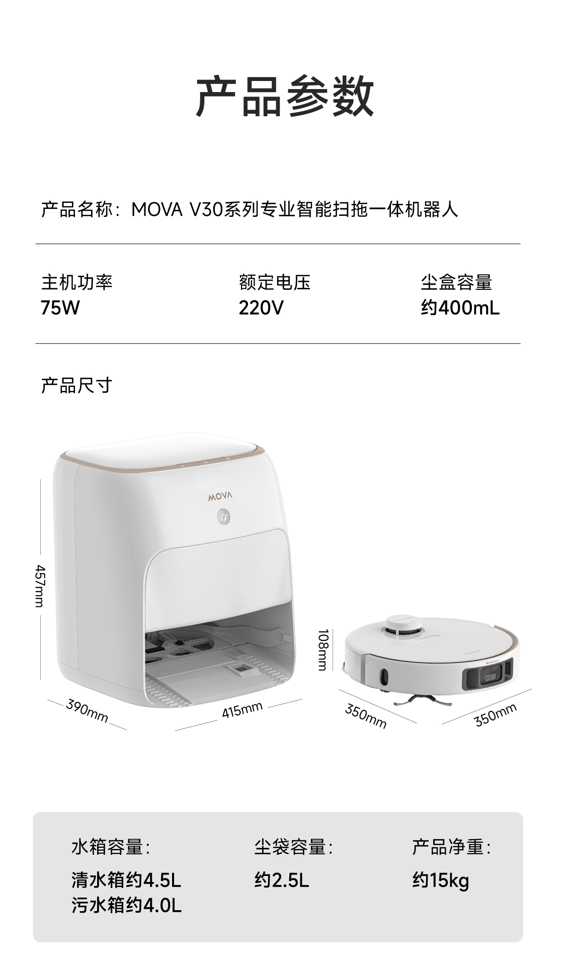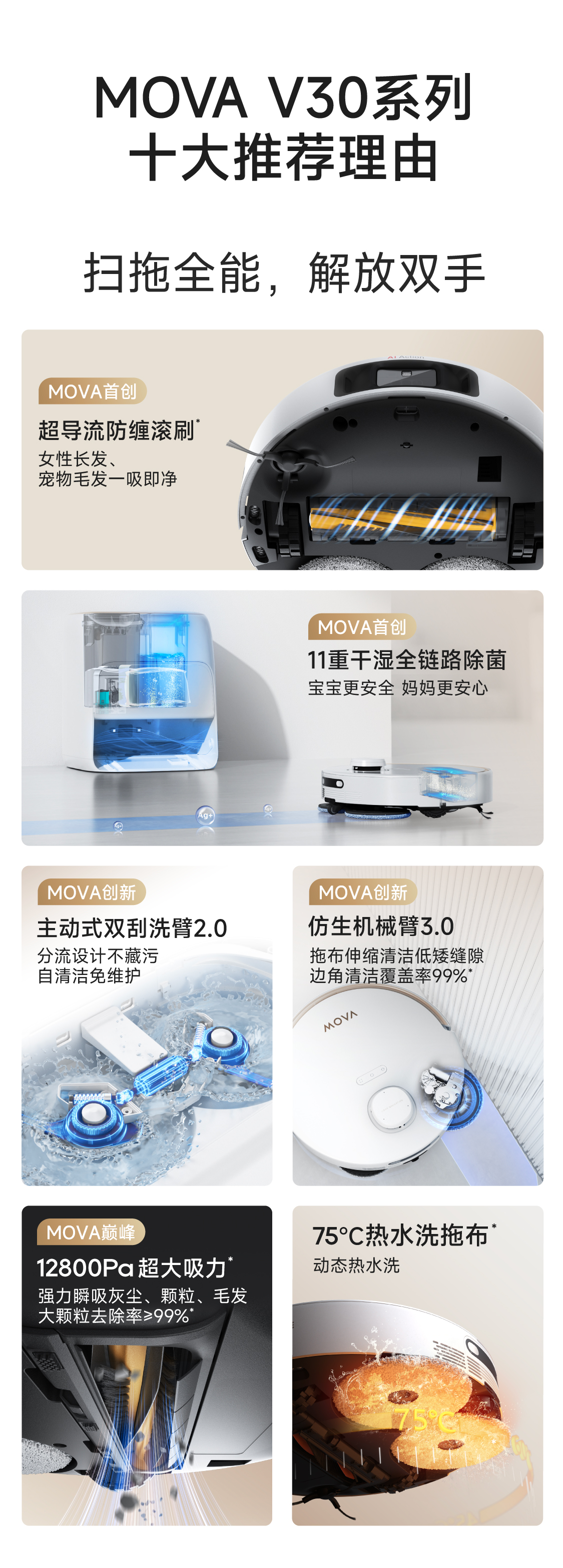 Mova V30 Pro 上下水版 12800PA 全能扫地机器人 白色2(单位:台)