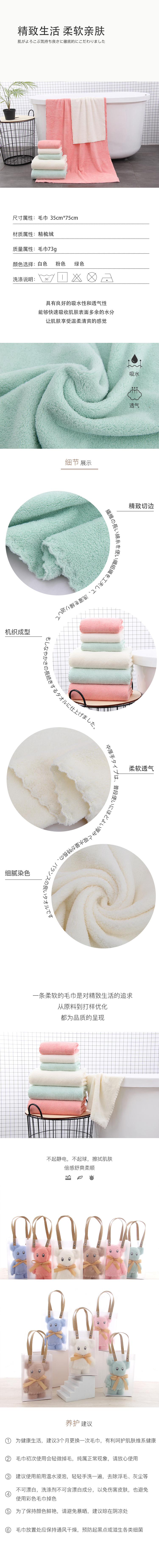UOMI 优享-11 35*75cm 73g 精梳绒创意小熊1毛巾袋装/套 粉色、绿色、蓝色、白色、咖色