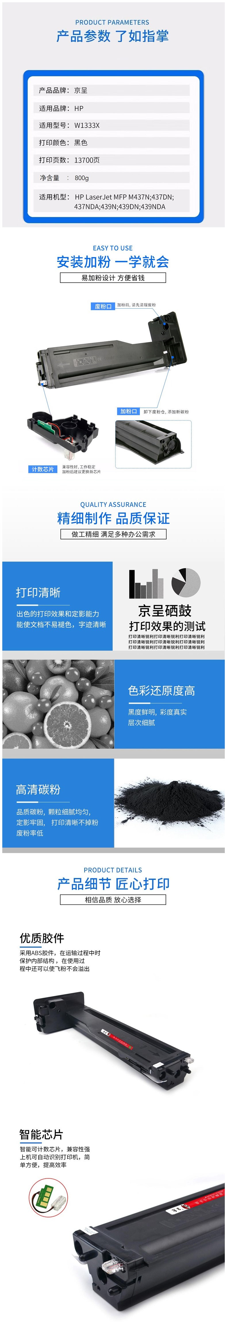 京呈 W1333X 13700页 适用惠普M437N;437DN 粉盒 大容量 黑色(单位:支)