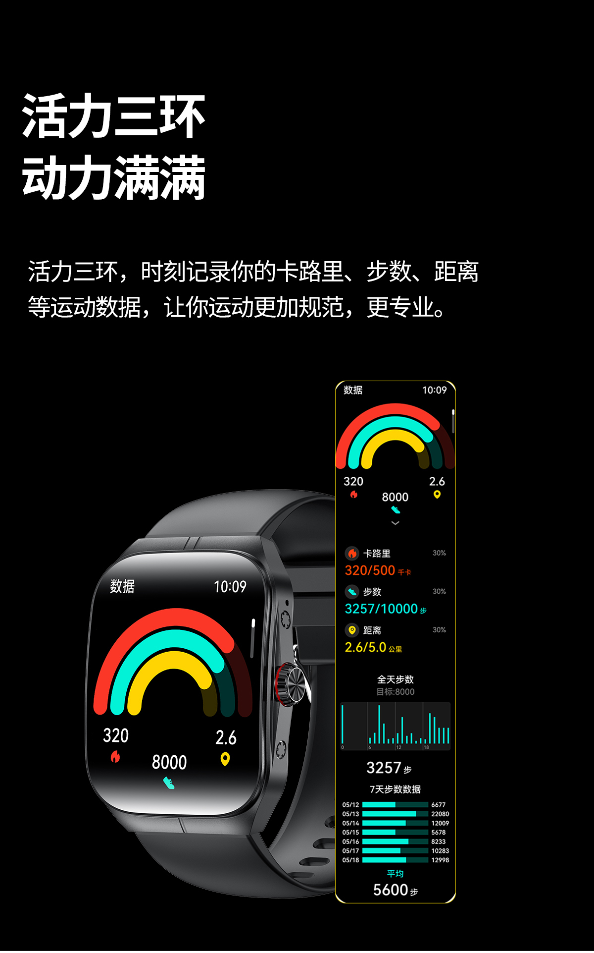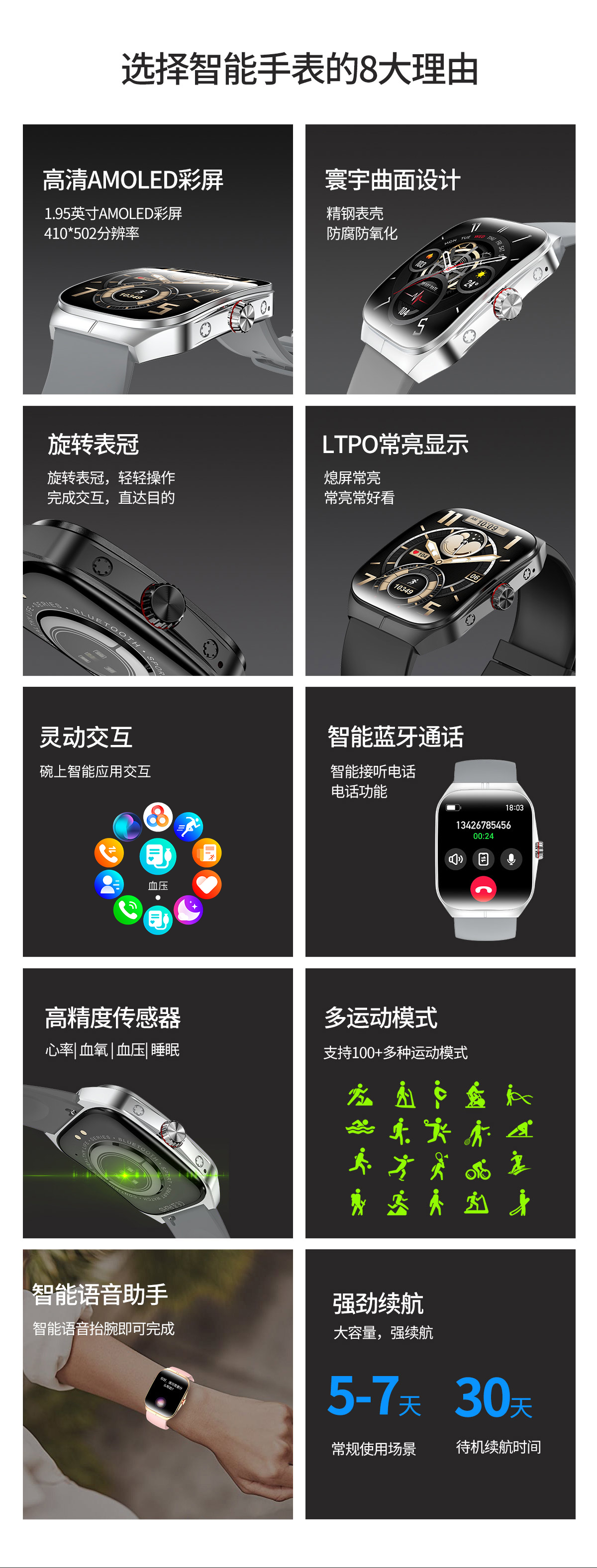 WITMIND HK80 1.95寸 智能运动健康手表 黑色(单位:个)