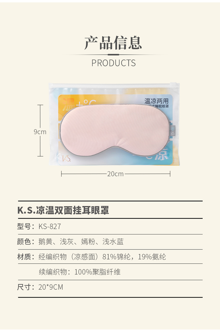 K.S. KS-827 20*9cm 温凉双面挂耳眼罩 混色(单位:只)