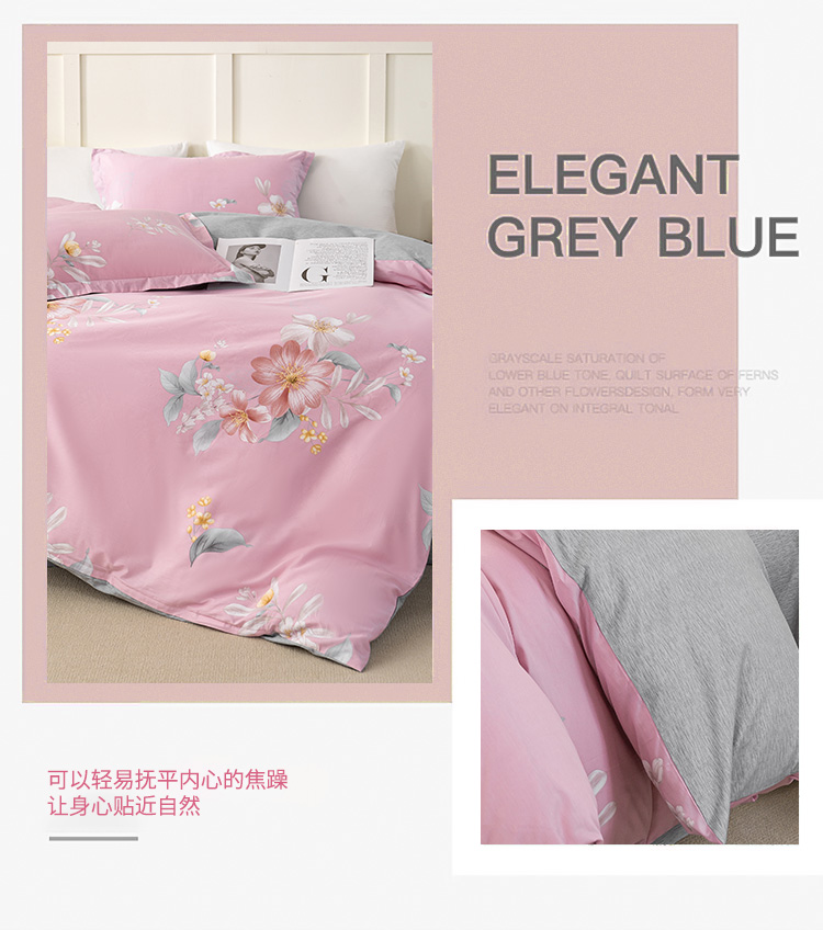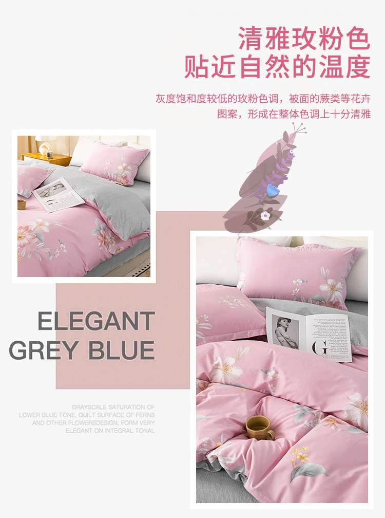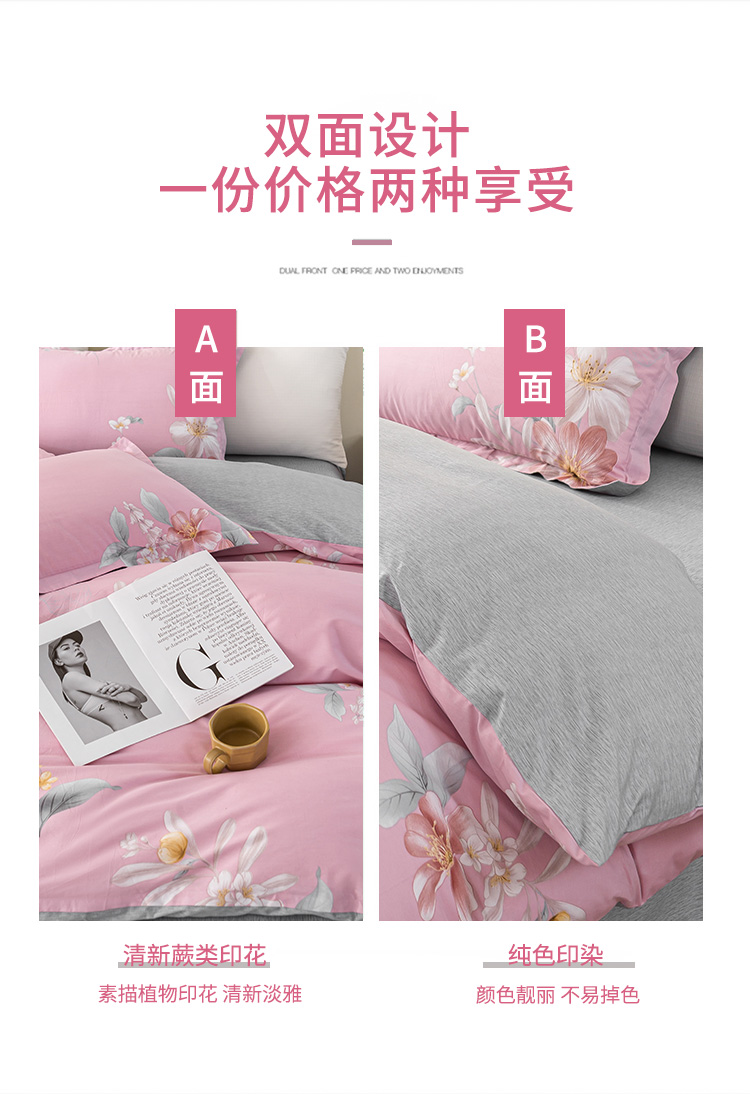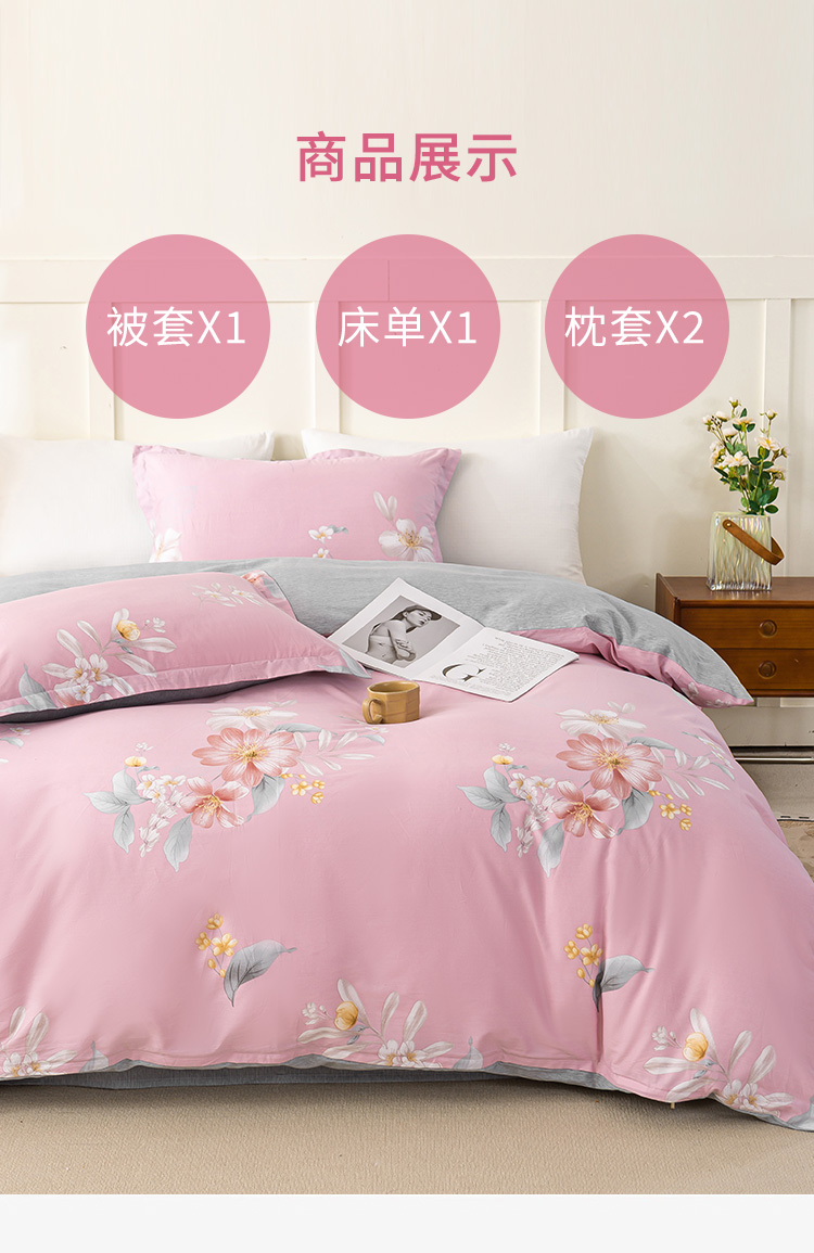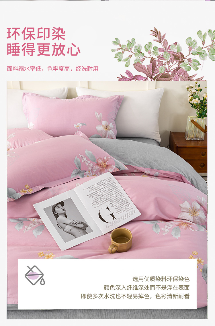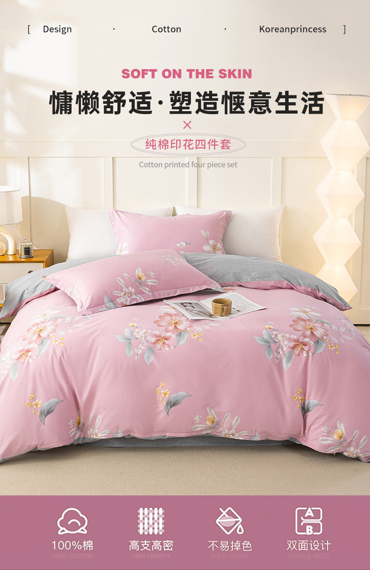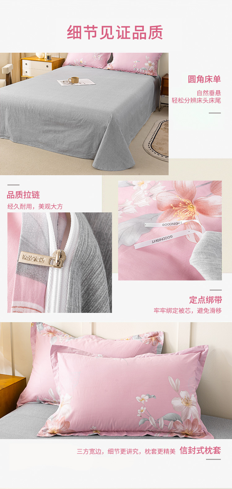 晚安家纺 全棉印花四件套-馨欣花妍 200*230 100%棉 粉红色(单位:套)