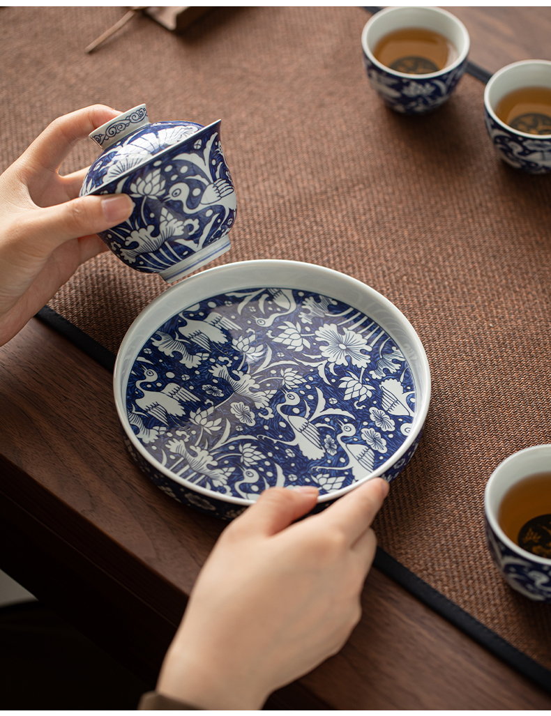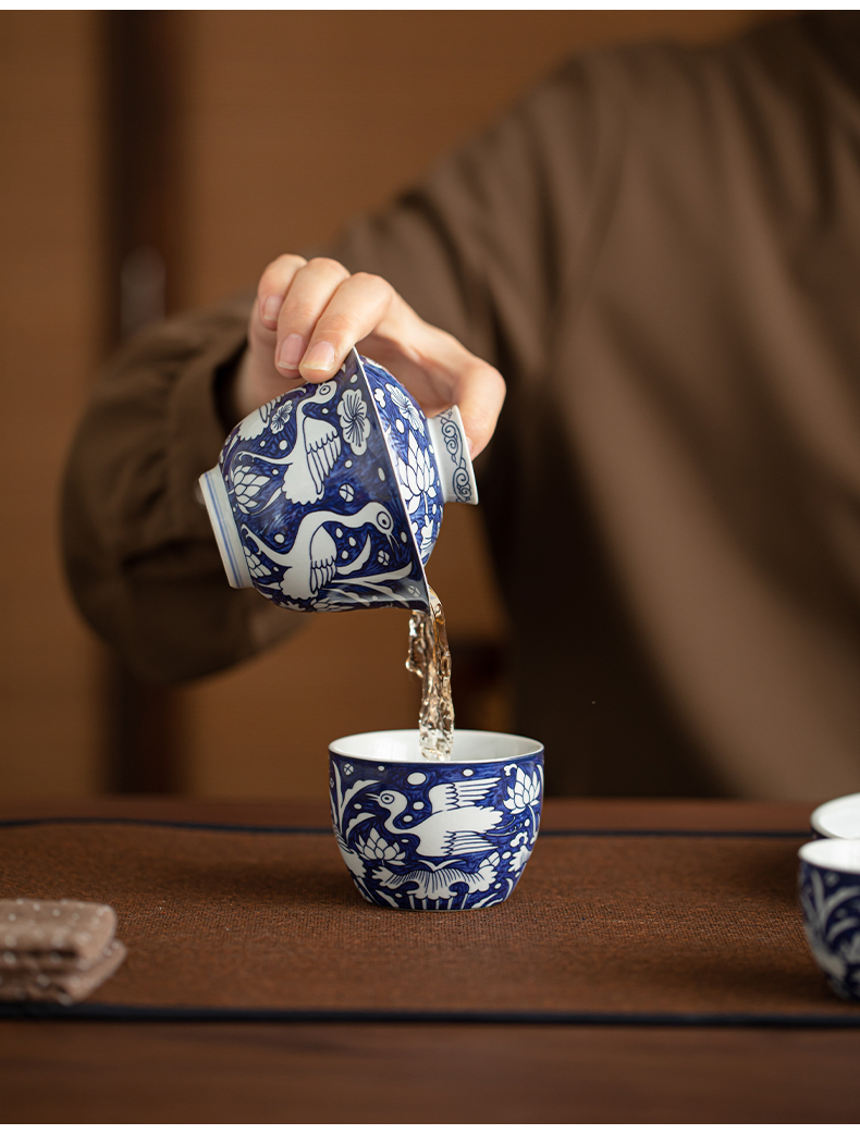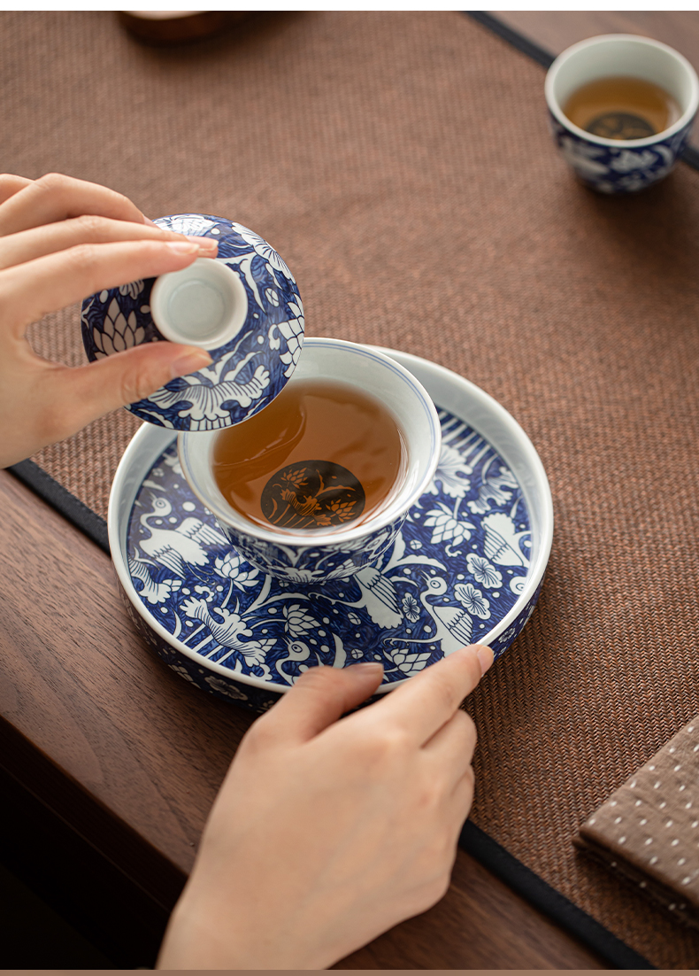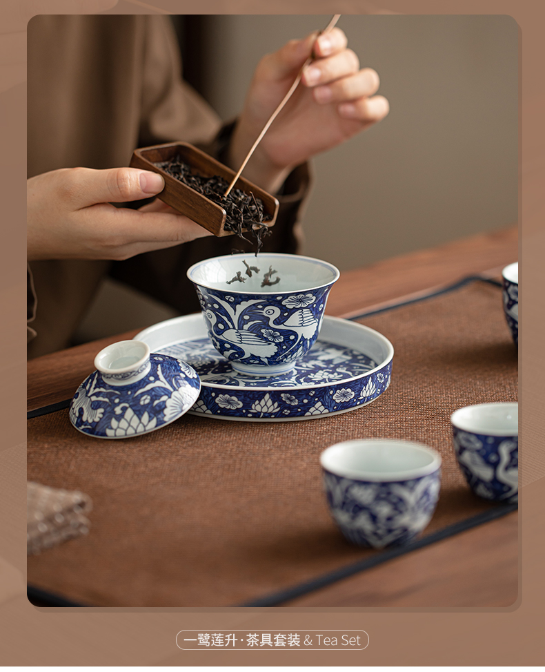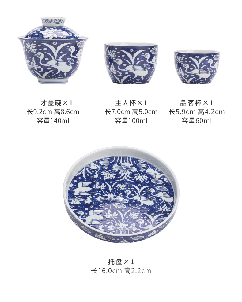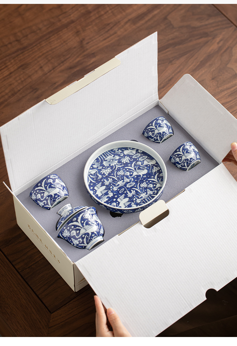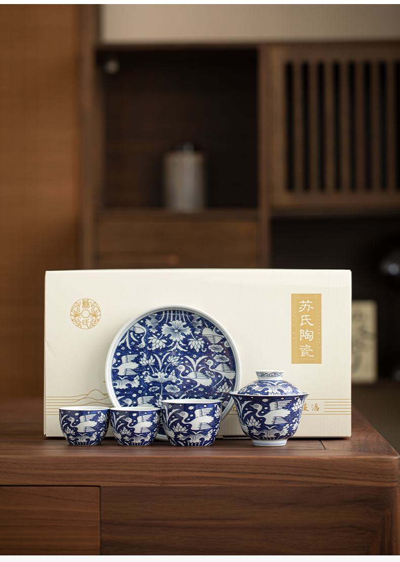 苏氏陶瓷(SUSHI CERAMICS) J1135 5头 青花一路莲升茶具套组 混色(单位:套)