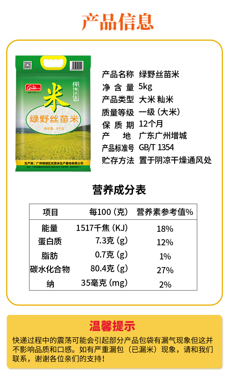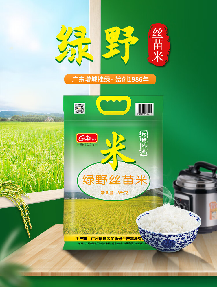 挂绿 丝苗米 5kg 增城绿野 雾雨绿(单位:袋)