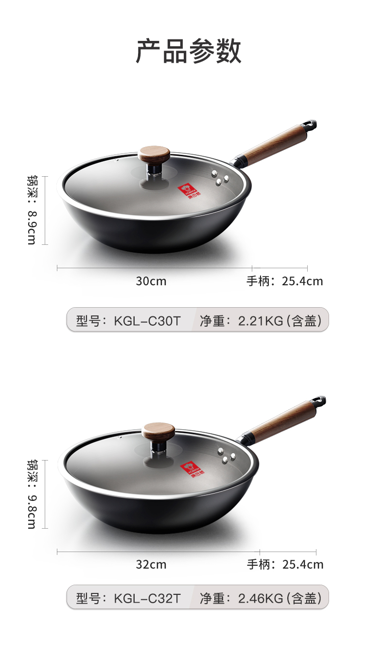 康巴赫 KGL-C30T 30cm 仿生不沾铁锅 黑色(单位:个)