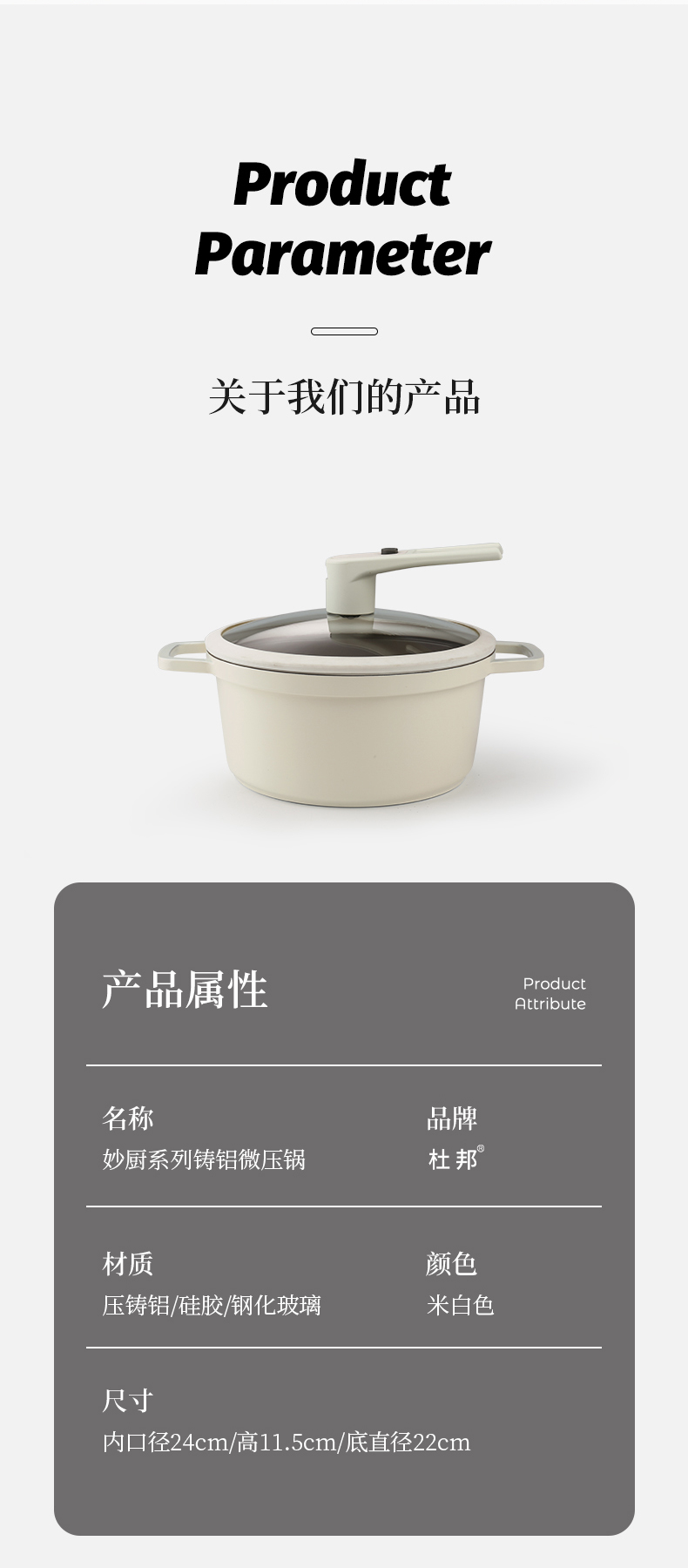 杜邦(DUPONT) PWYGT-840 24CM 妙厨系列铸铝微压锅 白色(单位:套)