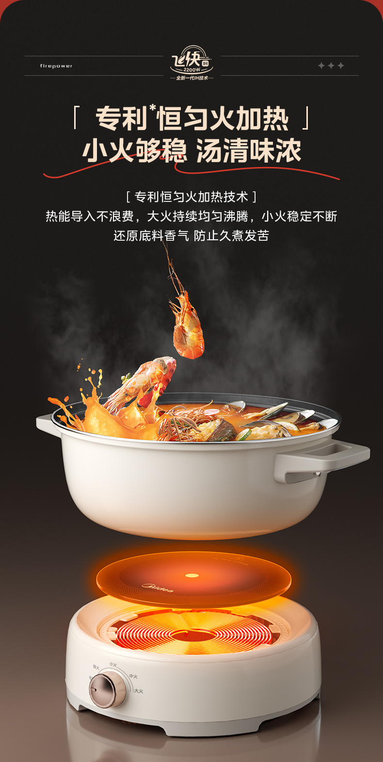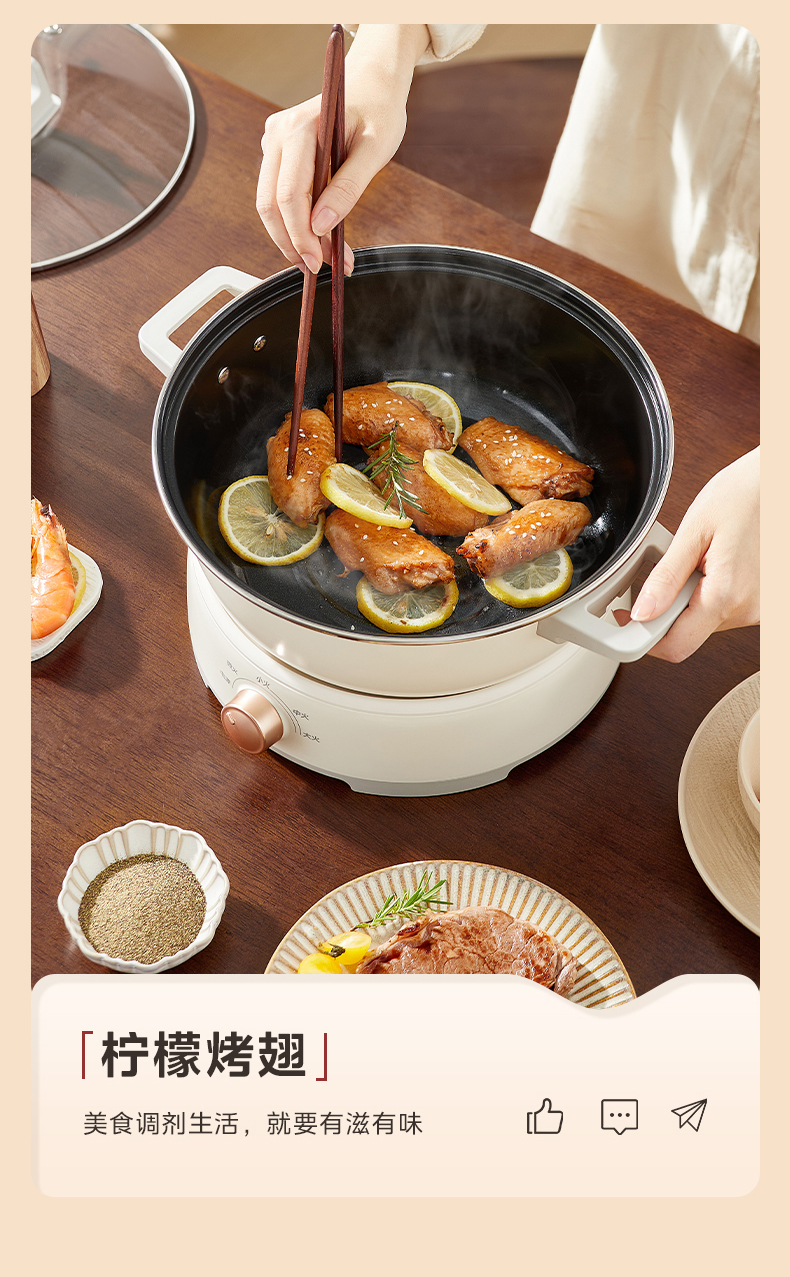 美的(Midea) HGE22BY06 4.5L 分体式电煮锅多用锅 白色(单位:台)