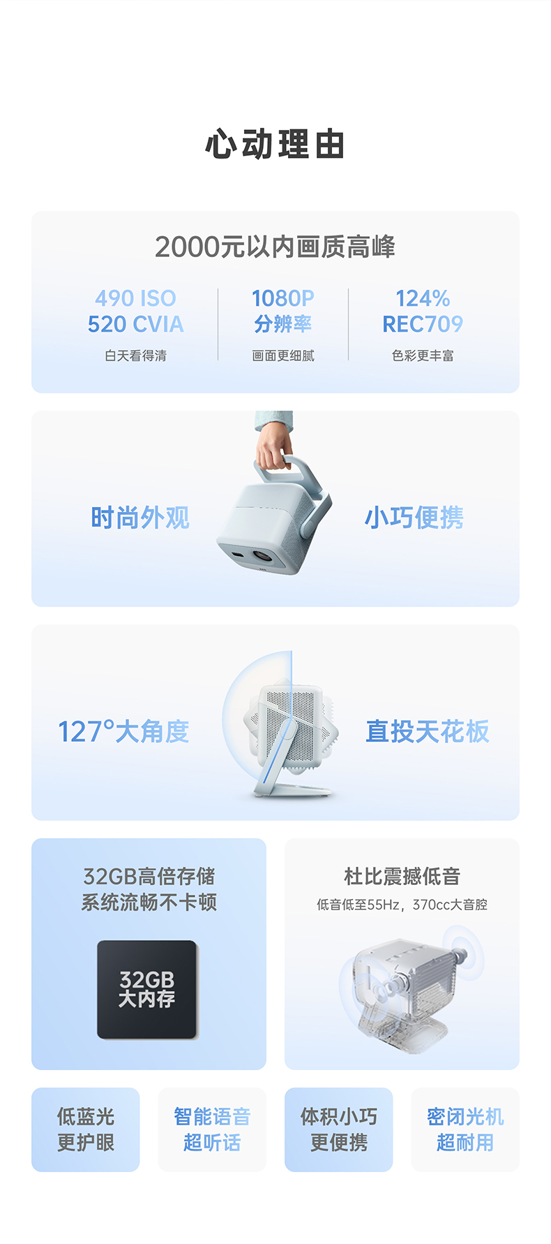 坚果 Nano 187*165*191 高清智能对焦投影机 天蓝色(单位:台)