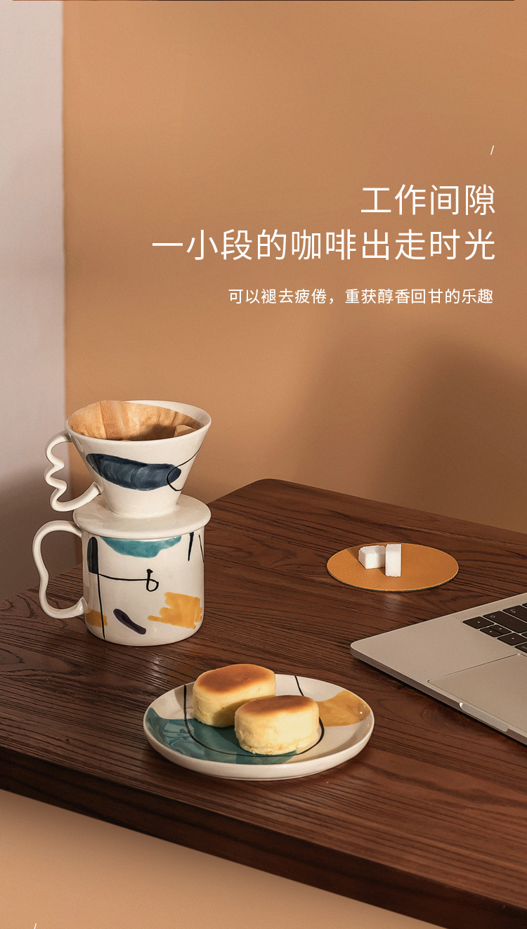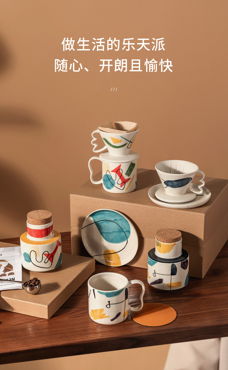 JOYYE 咖啡具套装 套4-乐天派咖啡杯套装花色1 4件 蓝色(单位:套)