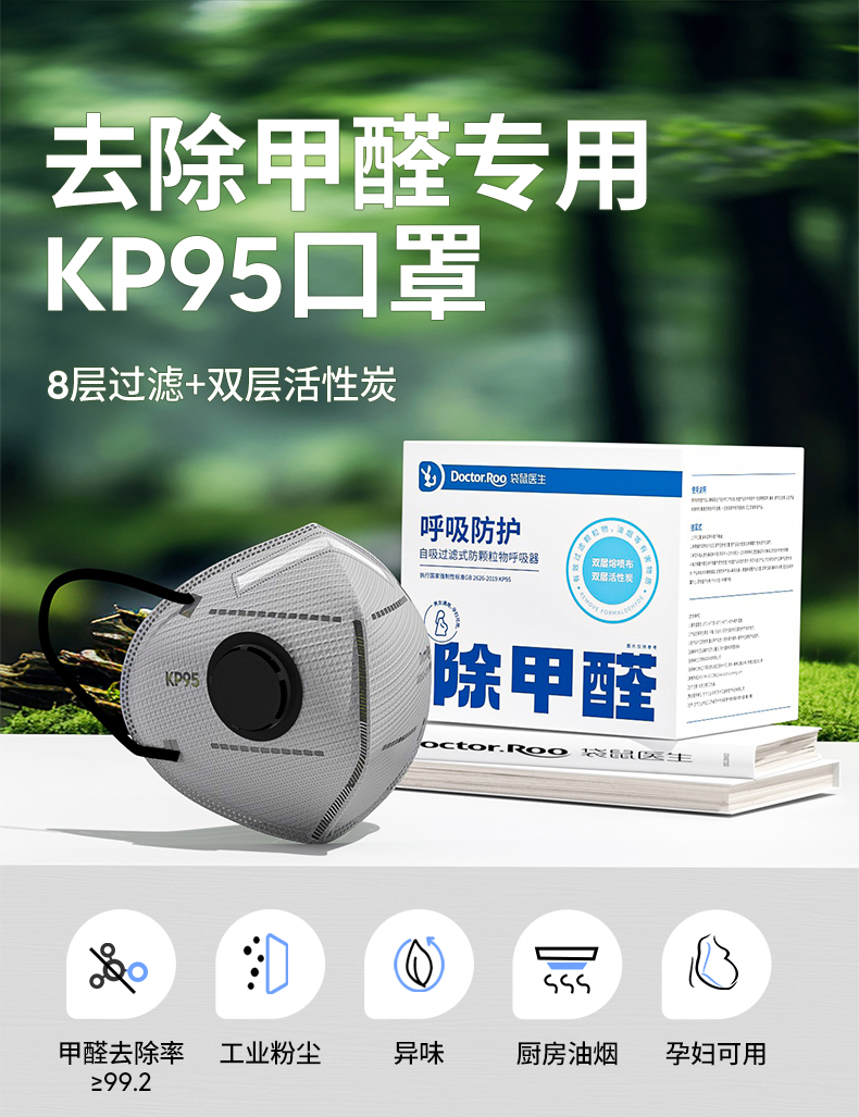 袋鼠医生(DR.ROOS) 去除甲醛专用口罩 10包/盒*1盒 KP95随弃式口罩 白色(单位:盒)
