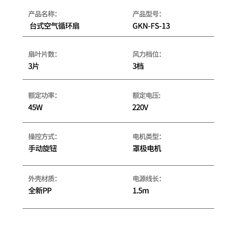 格卡诺(GKN) 空气循环扇 GKN-FS-13 3档 白色(单位:台)