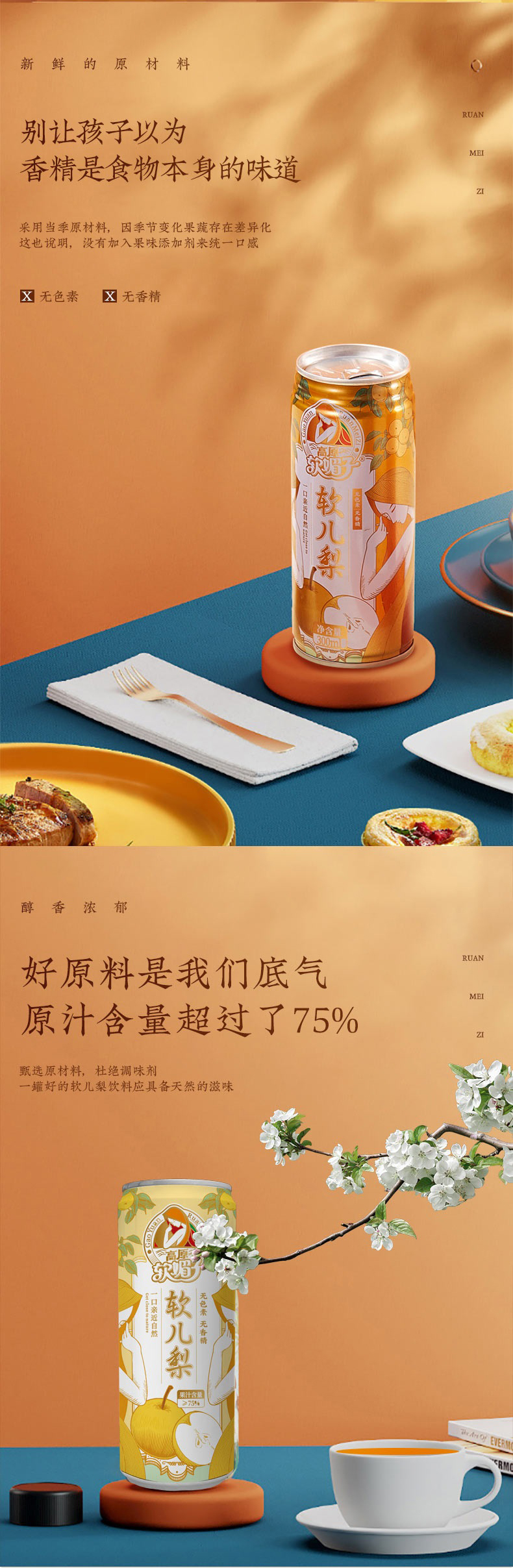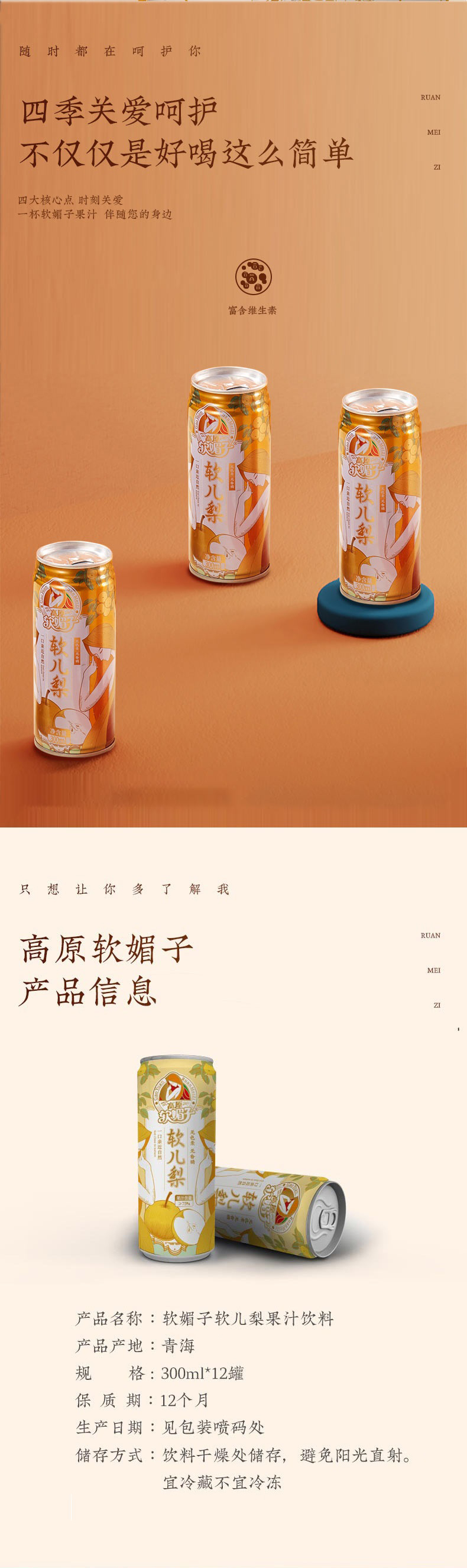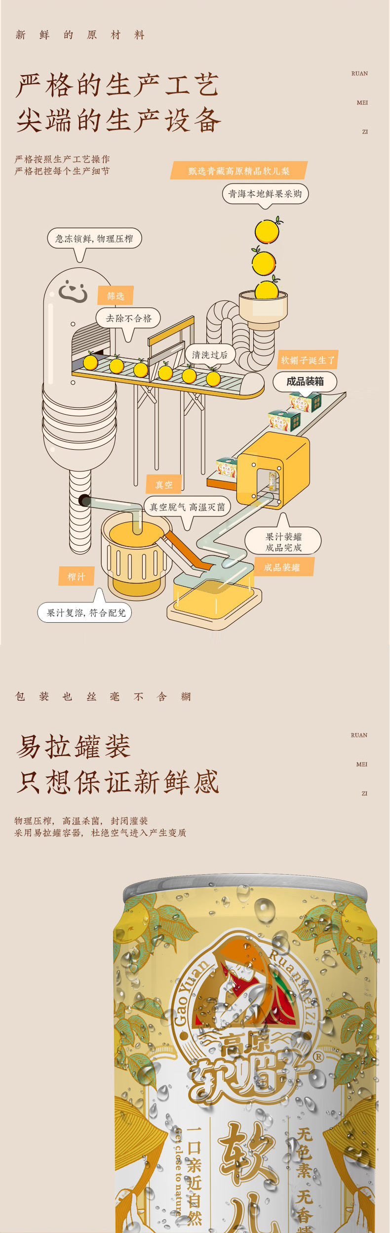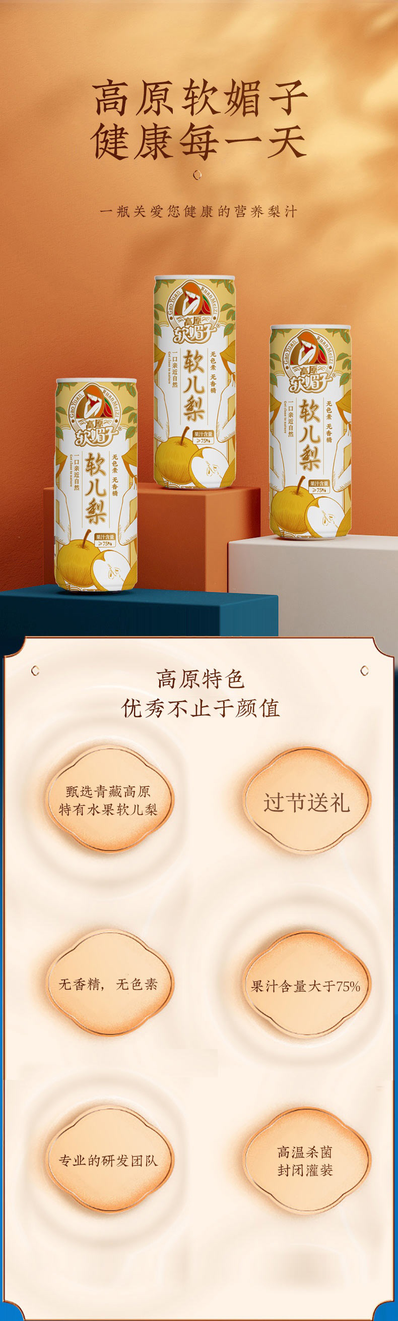 高原软媚子 软儿梨汁 300mL*12罐 果汁含量>75% 奶茶杏(单位:箱)