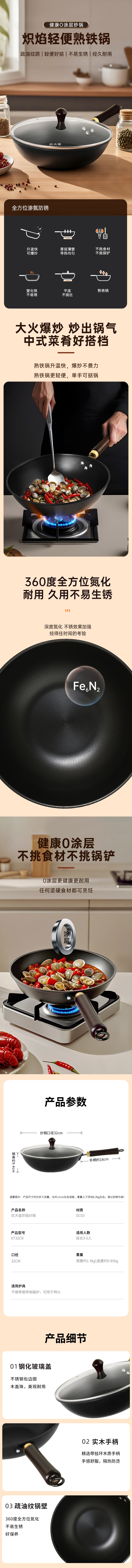 炊大皇 炒锅熟铁 XT32CR 32cm 曜石黑(单位:只)
