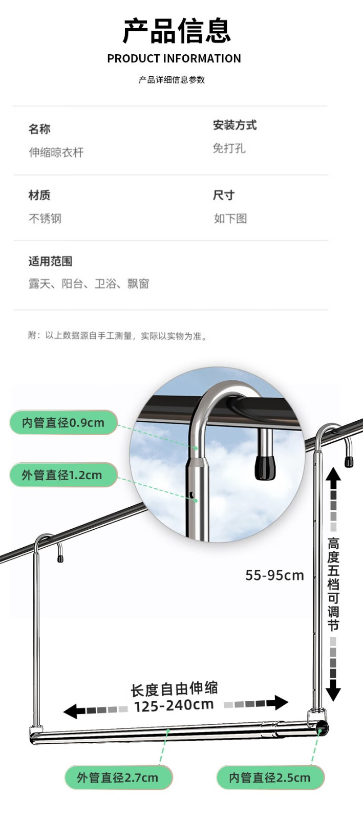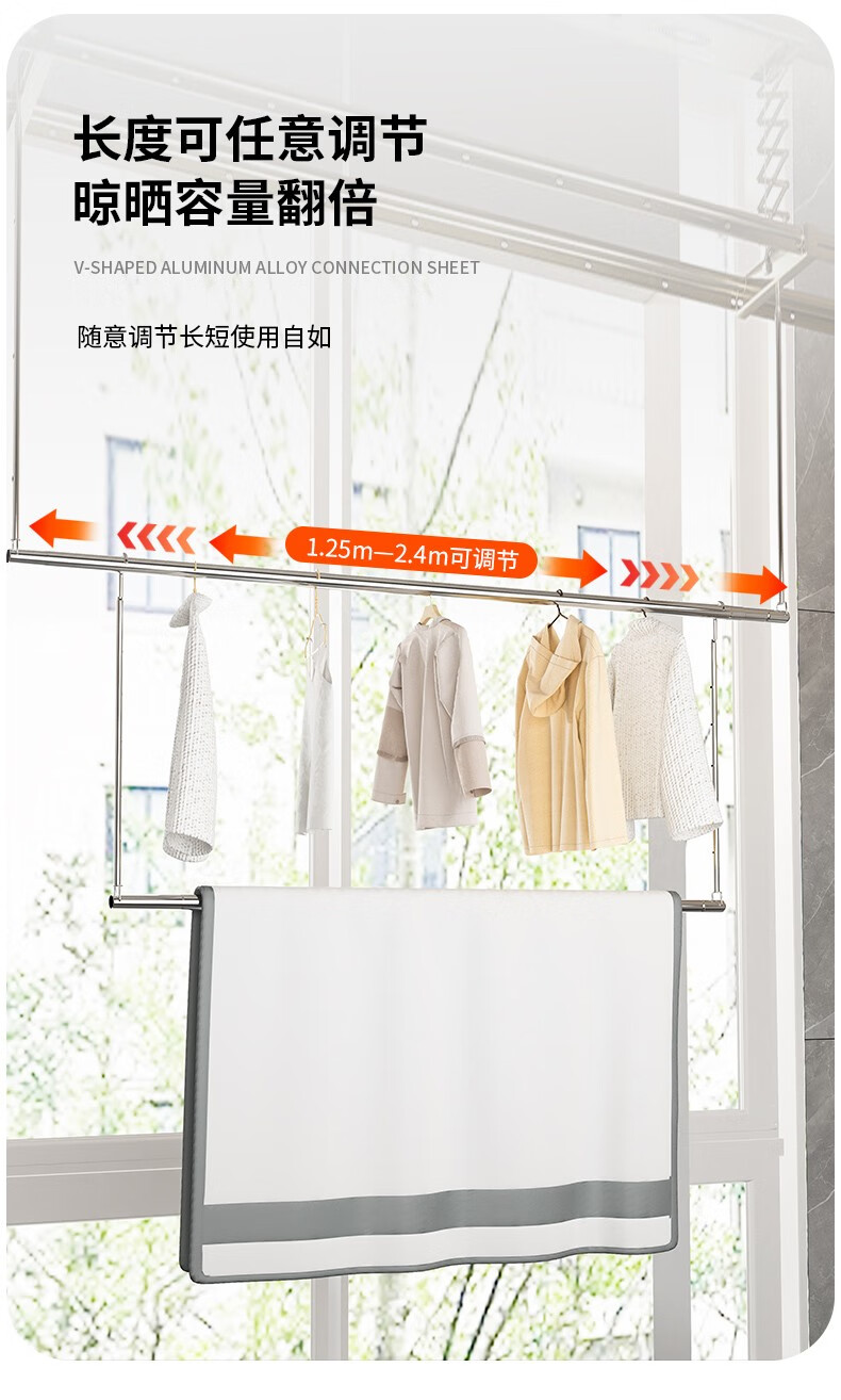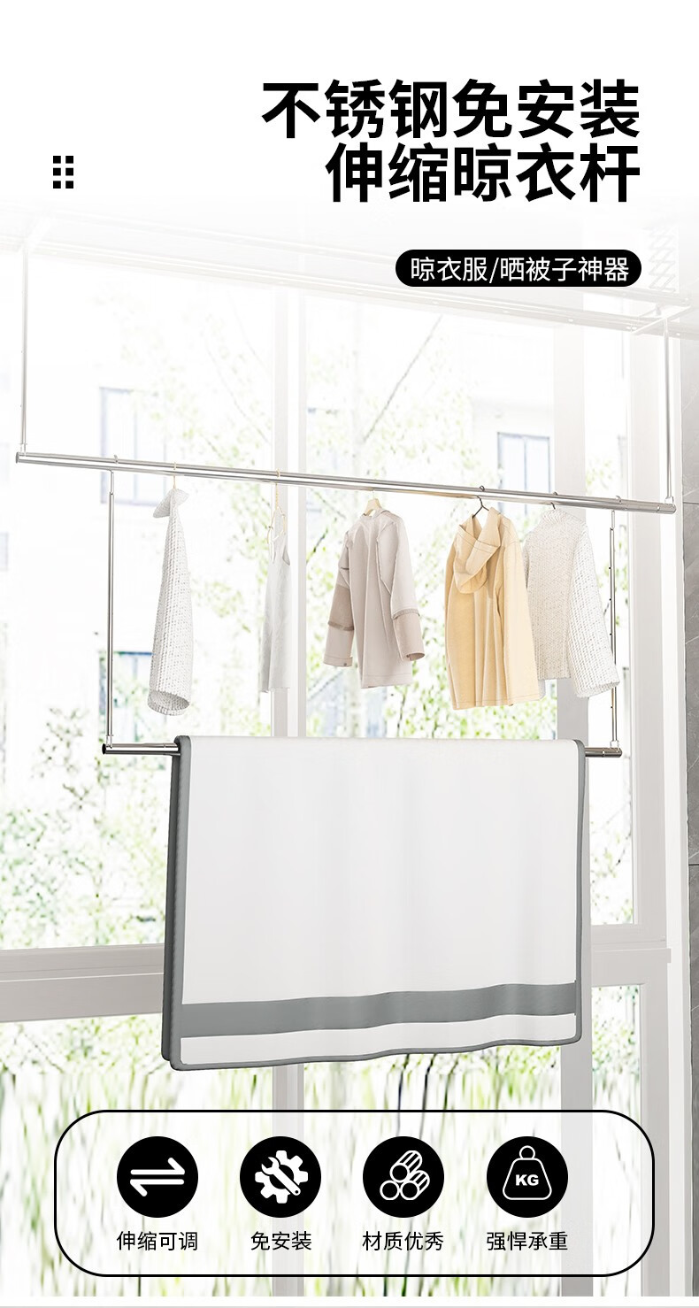 优勤(YOUQIN) 983-4(*) 晒被杆伸缩款125-240cm/55-95cm 晒被子神器 不锈钢色(单位:个)