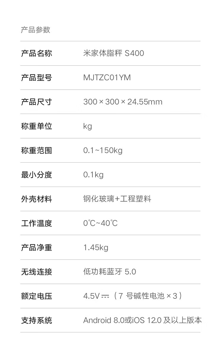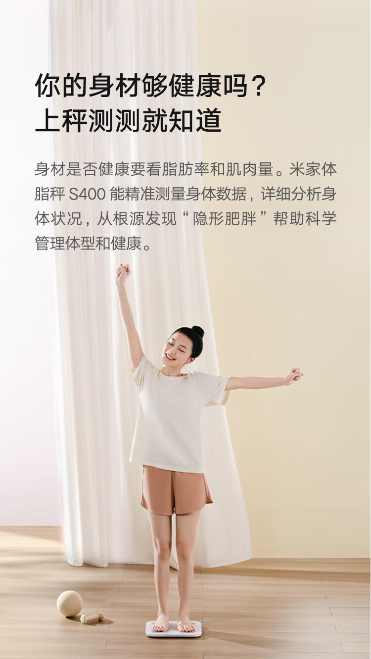 米家(MIJIA) 体脂秤 S400 MJTZC01YM 300x300x24.55mm 白色(单位:个)