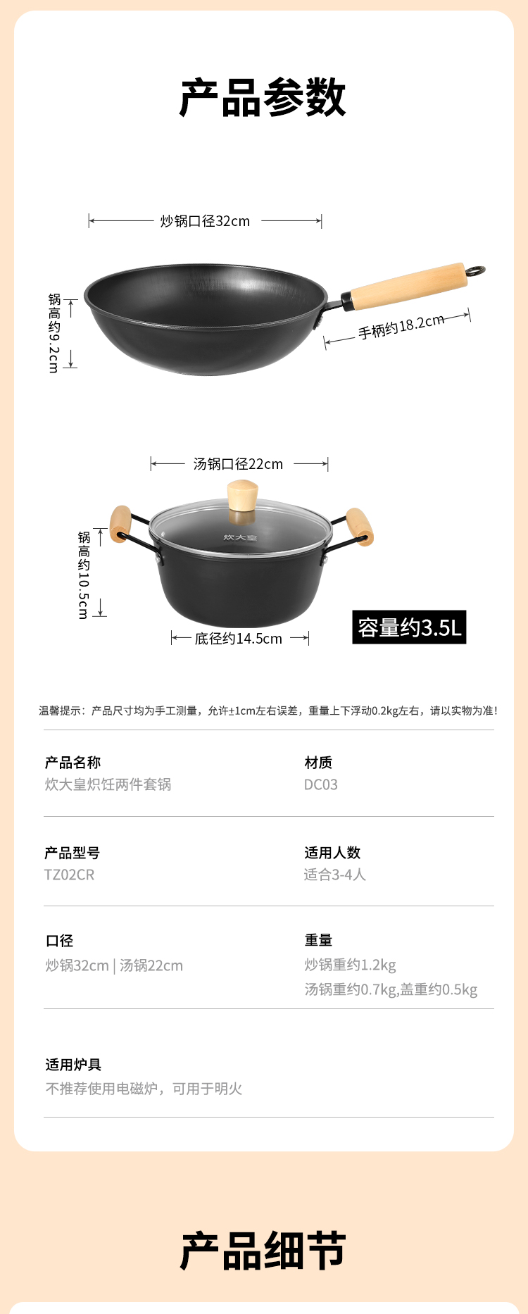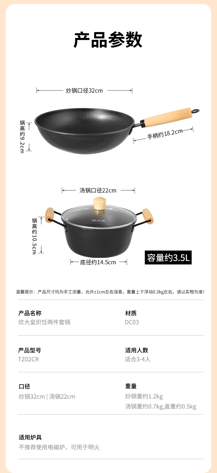 炊大皇 TZ02CR 32cm/22cm 炽饪两件套 曜石黑(单位:套)