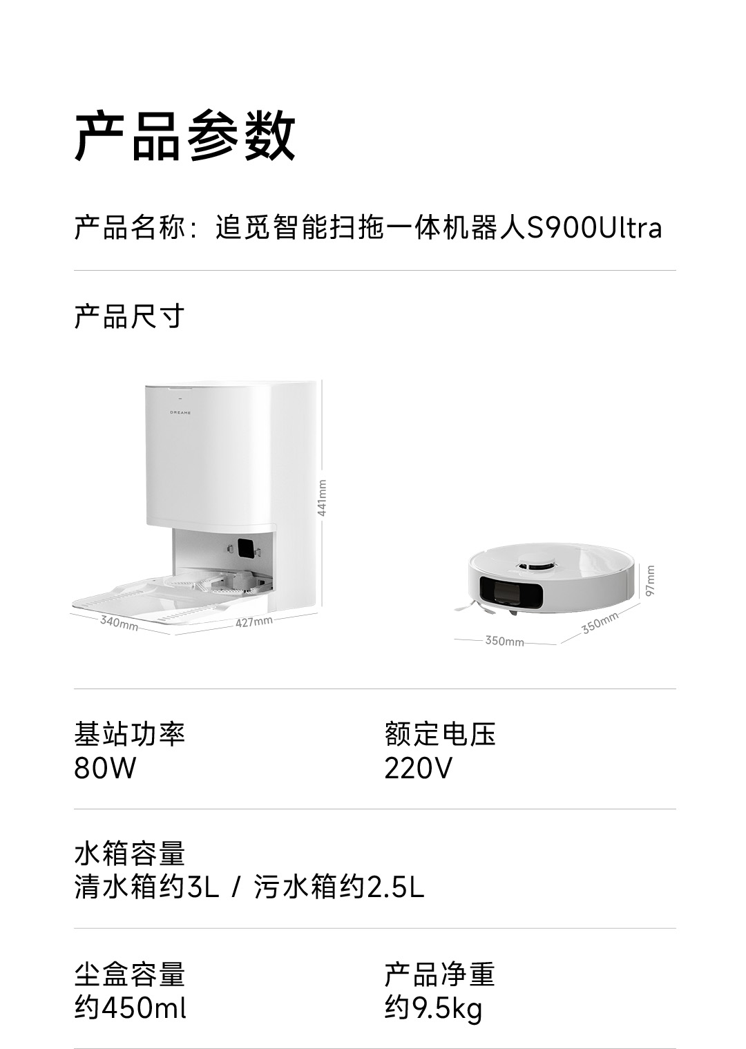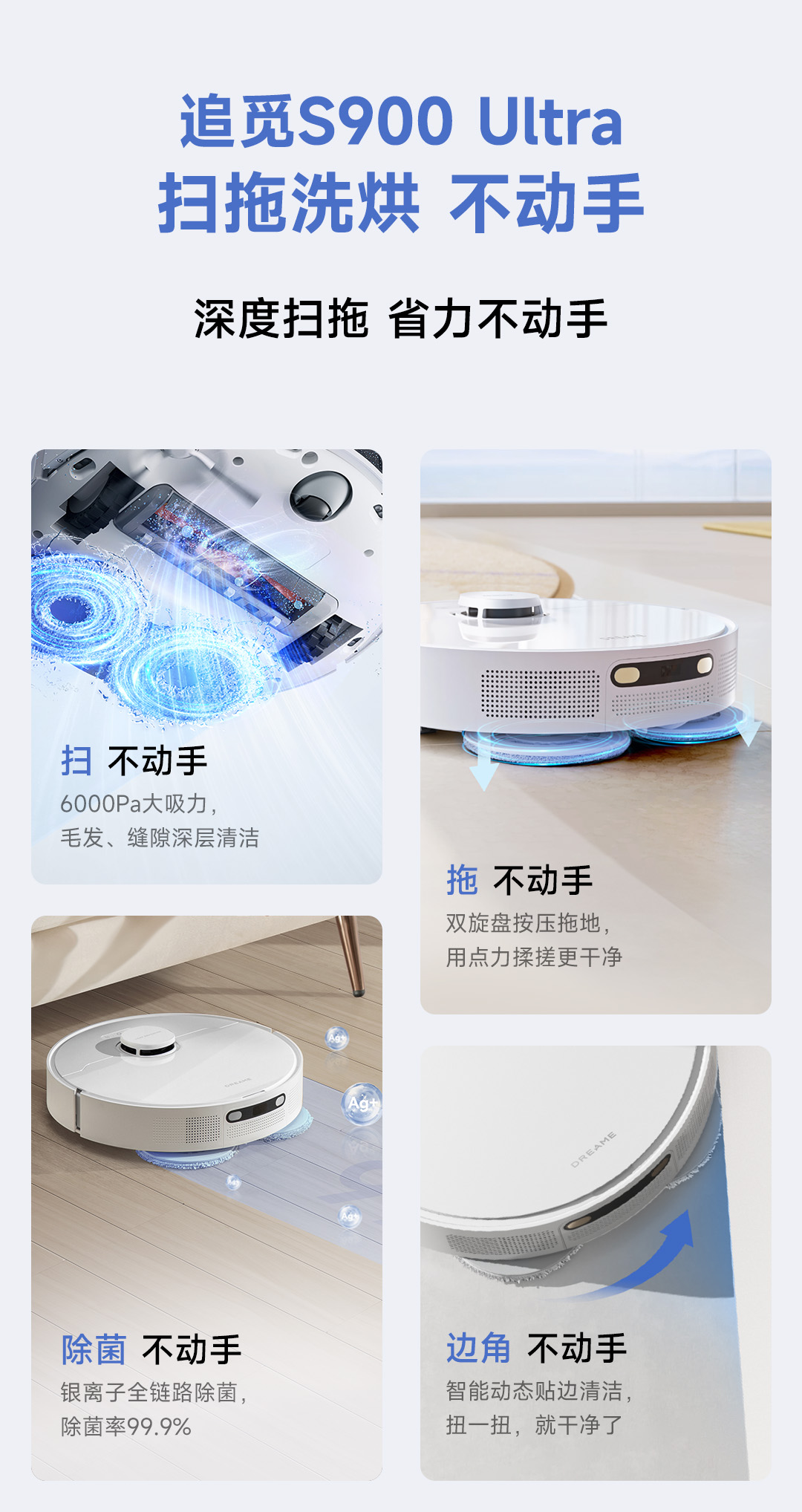 追觅 S900 Ultra 6000pa超强吸力 扫地机器人 白色(单位:件)