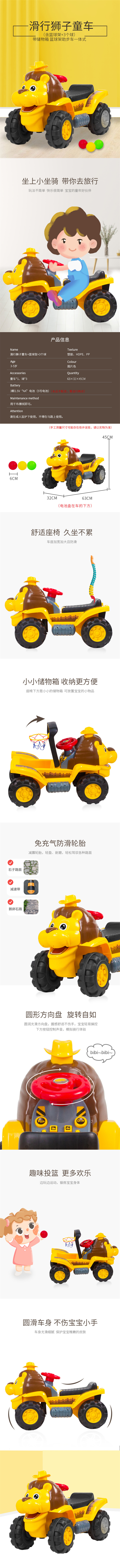 婴侍卫 二合一滑行狮子童车(含篮球架+3个球) 图片色