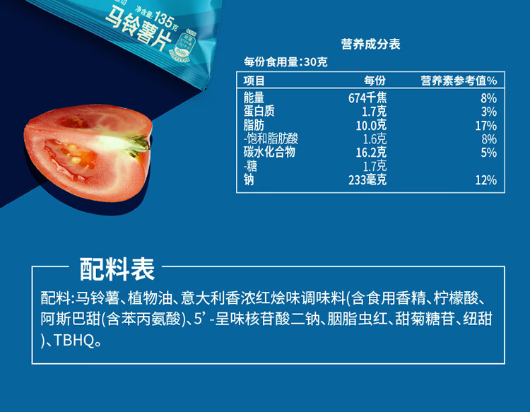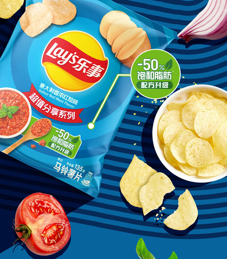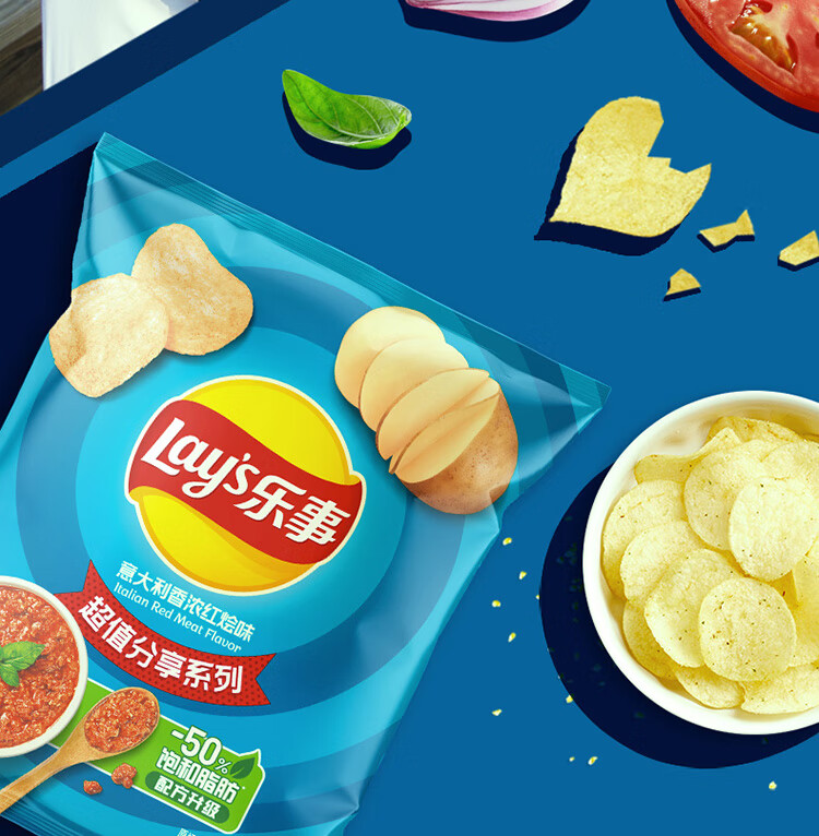 乐事(Lay's) 意大利香浓红烩味薯片 135g*2 真薯原切 够薄够脆 水蓝色(单位:组)