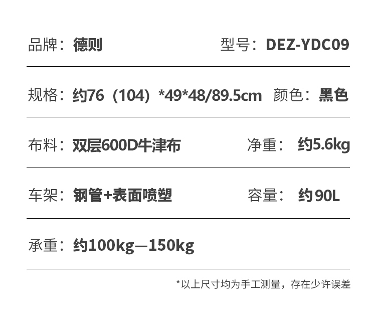 德则 多功能折叠后开门户外营地车 DEZ-YDC09 约76(104)*49*48/89.5cm 黑色(单位:辆)