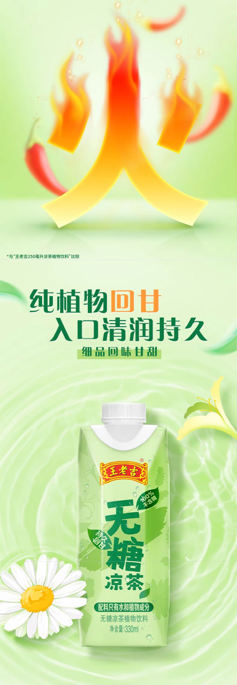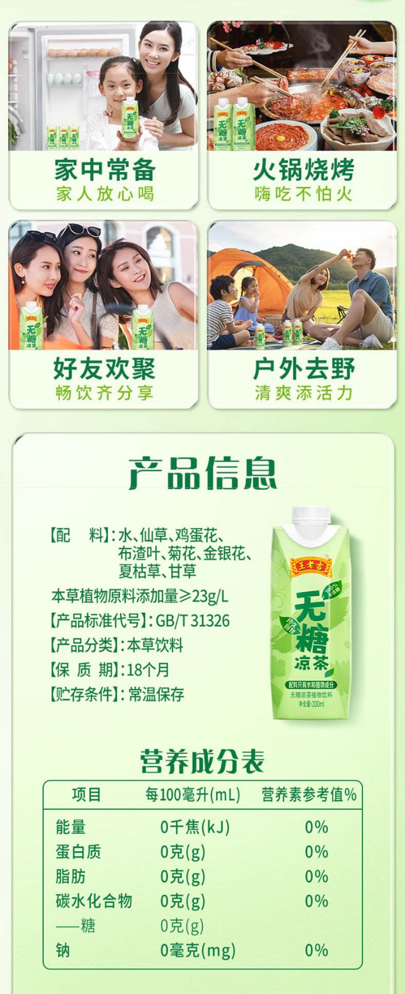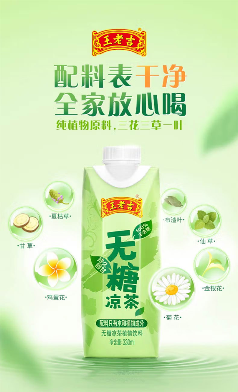 王老吉 无糖凉茶 绿盒装饮料整箱 330ML*12支/箱 雾雨绿(单位:箱)