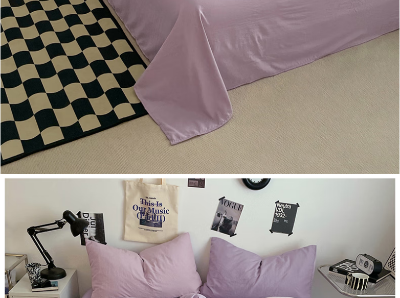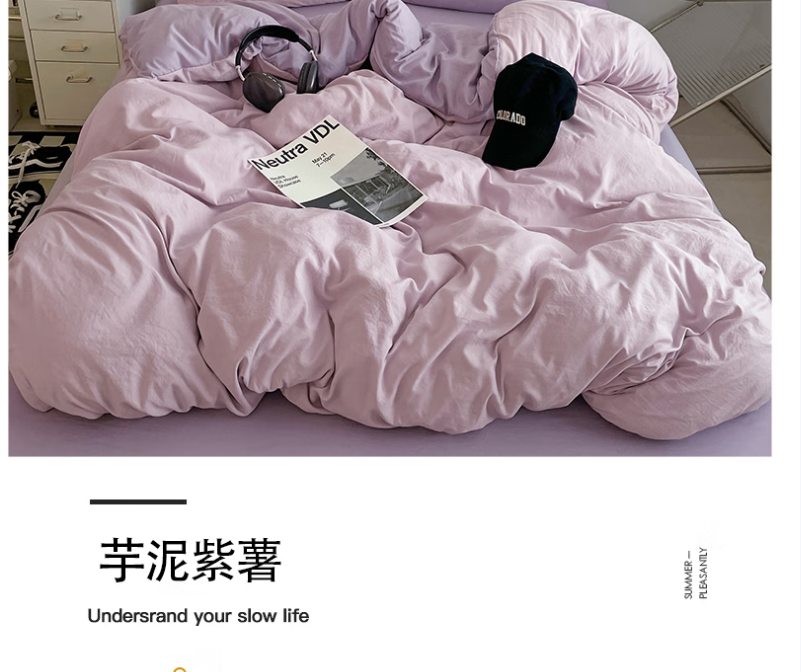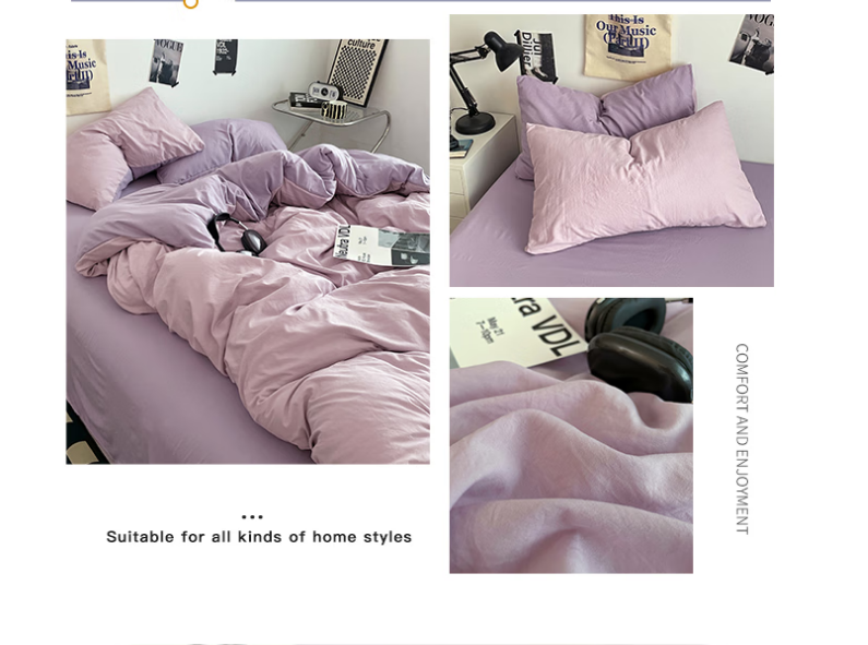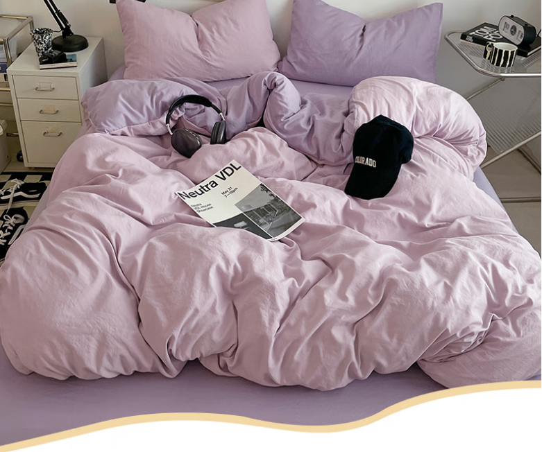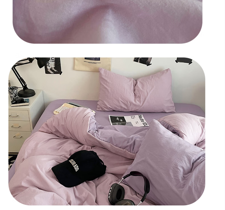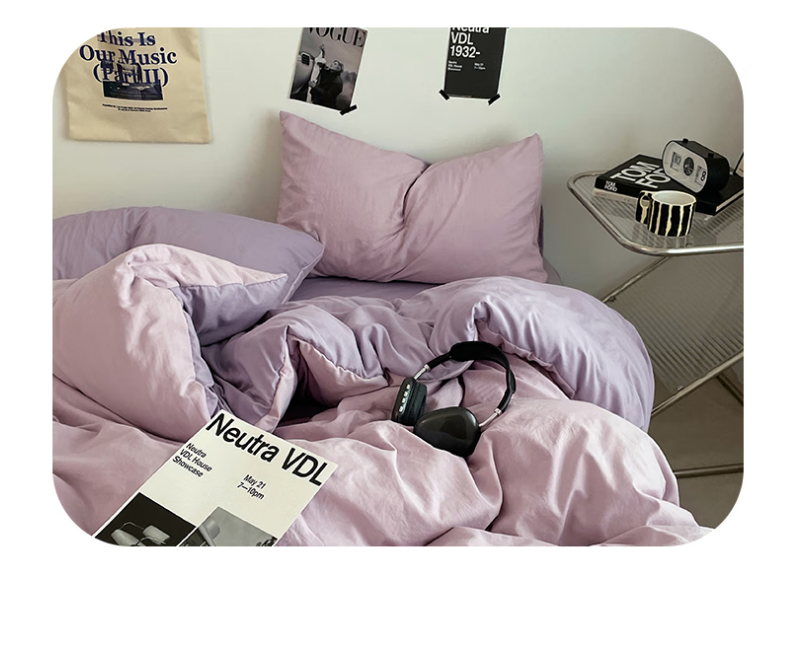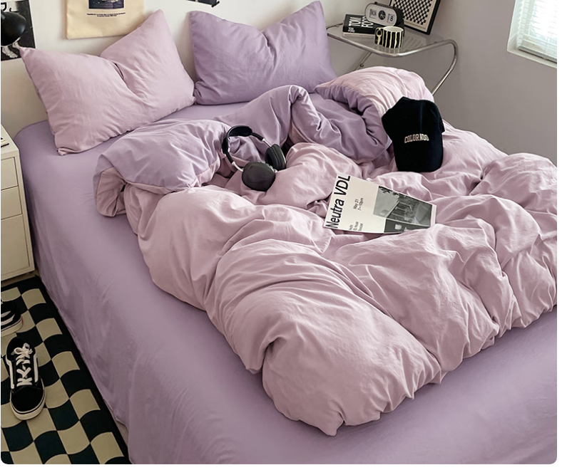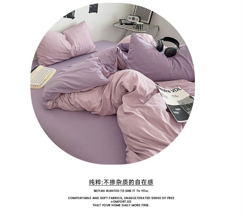 安娜艾莎(ANNA AISHER) ins超柔水洗棉撞色四件套 多巴胺撞色系 被套200*230cm 紫色(单位:套)