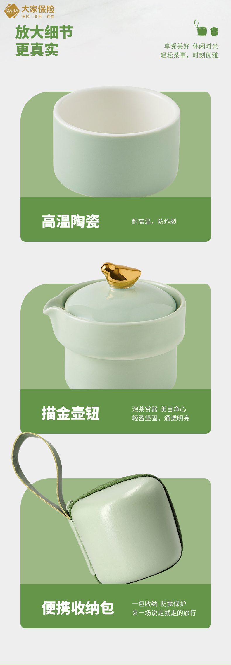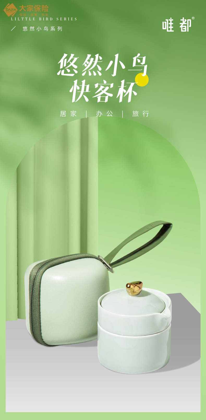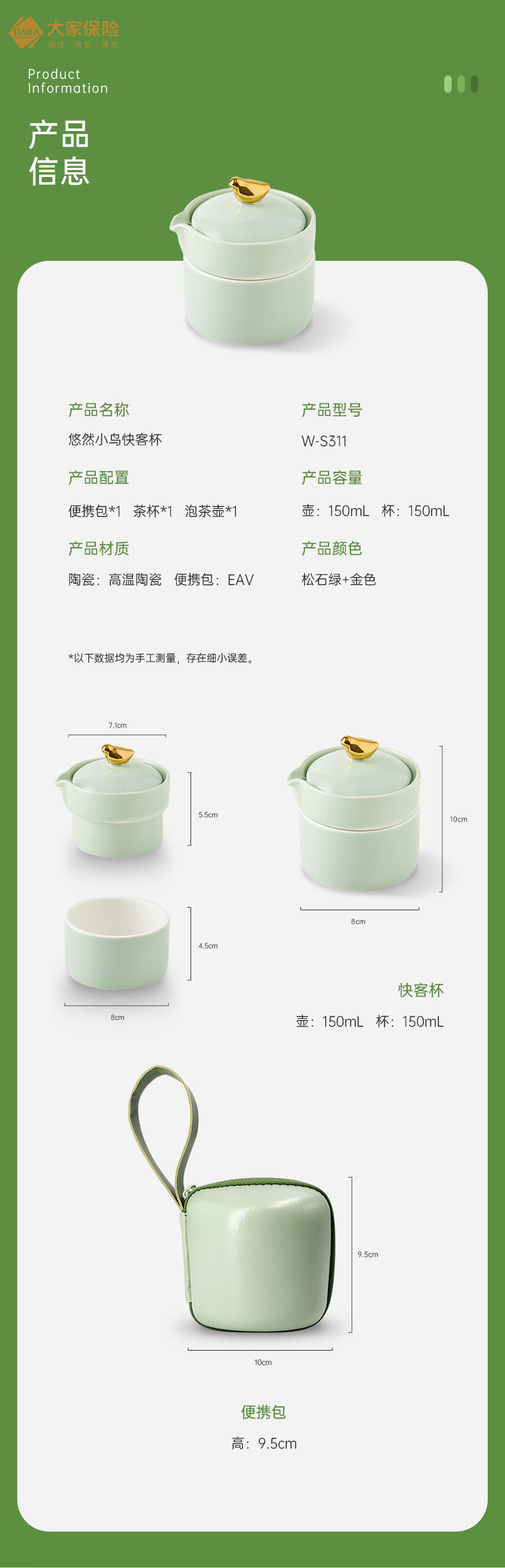 唯都 悠然小鸟快客杯 W-S311 一壶一杯 松石绿(单位:套)