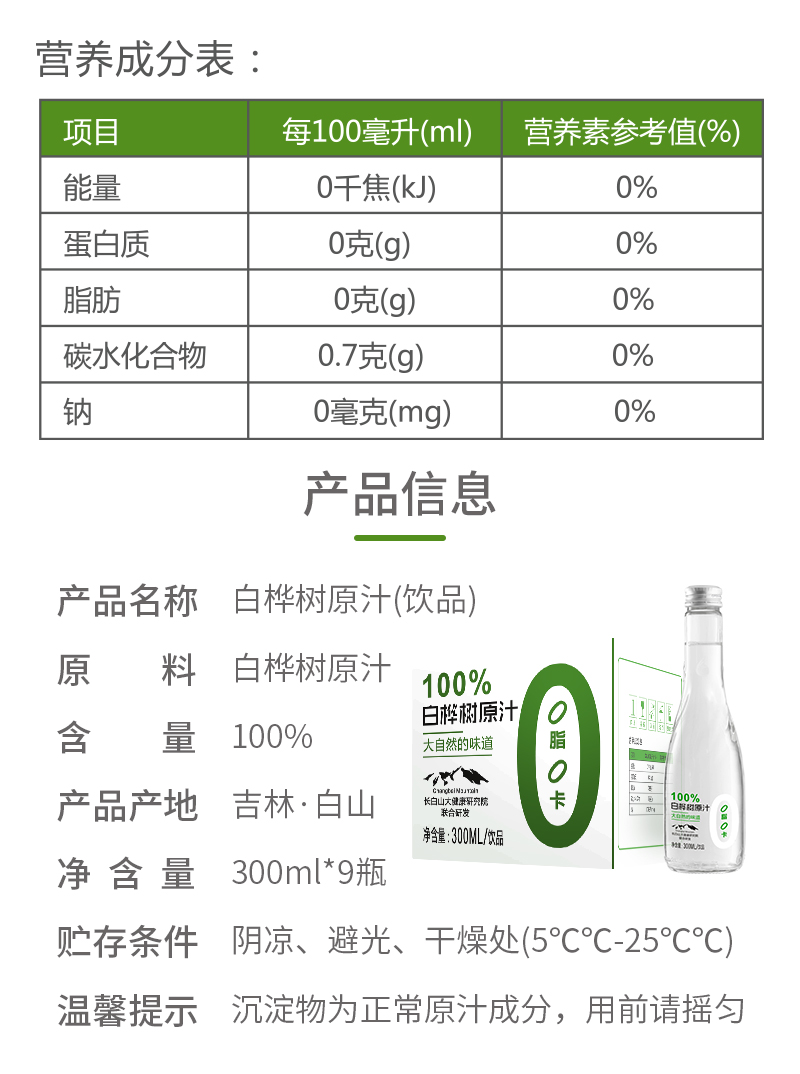 林源春 白桦树汁100%NFC原汁 原液 0添加 300ml*9 无色(单位:箱)