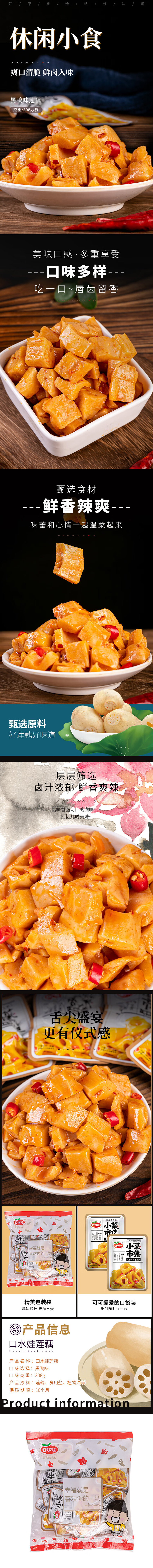口水娃 口水娃黑鸭味莲藕 休闲零食即食蔬菜制品零食 308g/袋 白色(单位:袋)