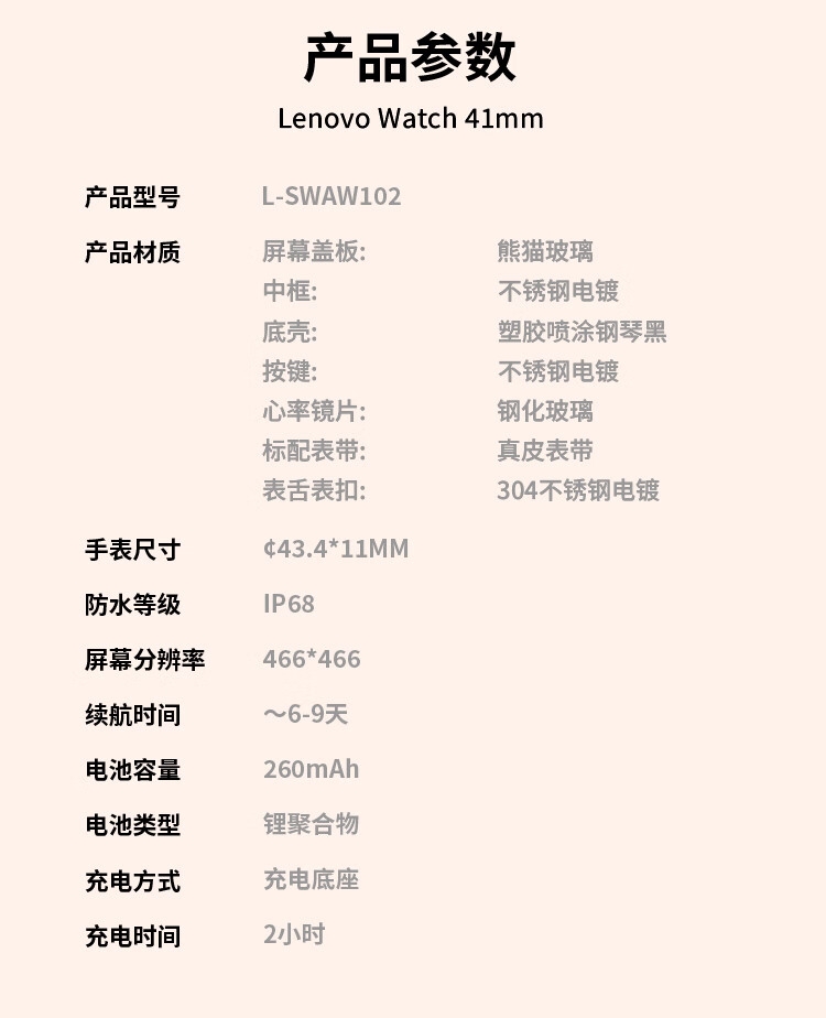 联想(Lenovo) 智能手表 L-SWAW102 260mAh 云石银(单位:块)