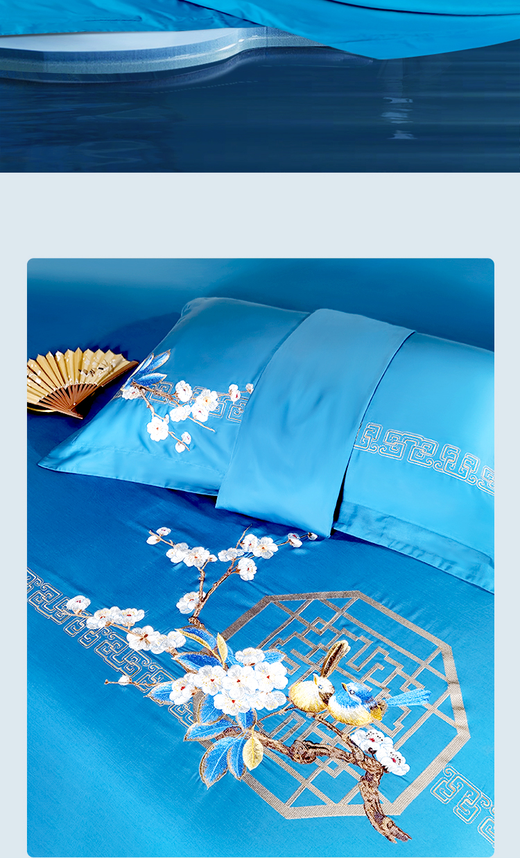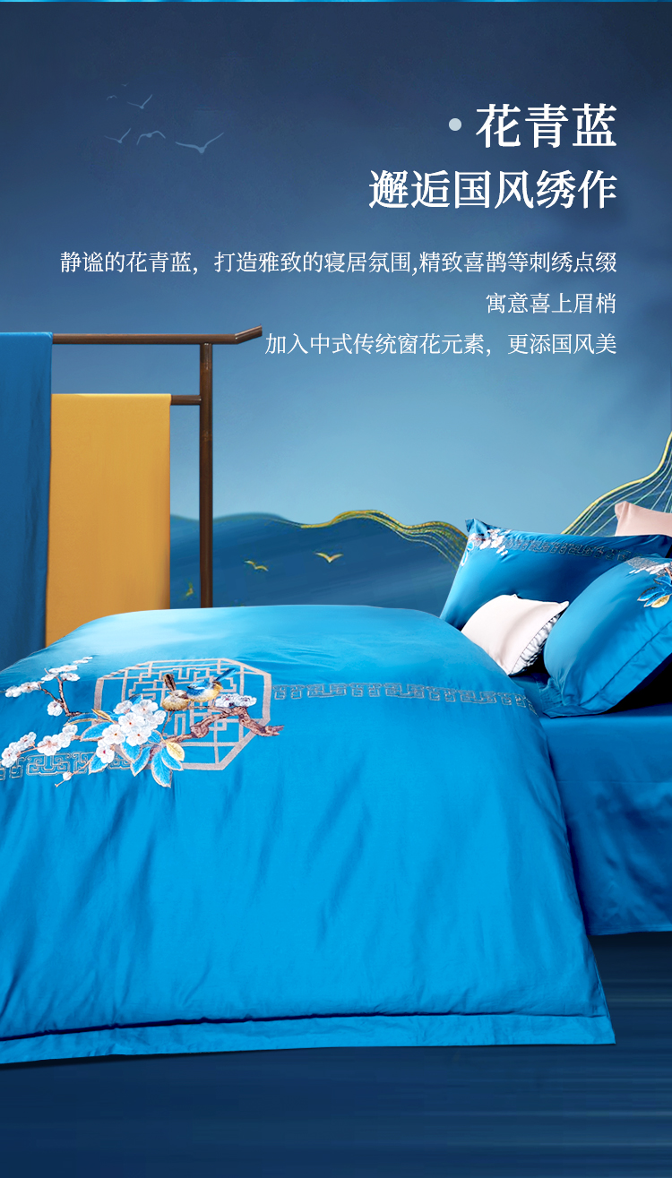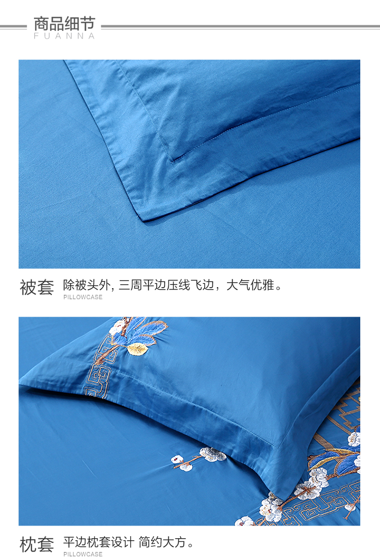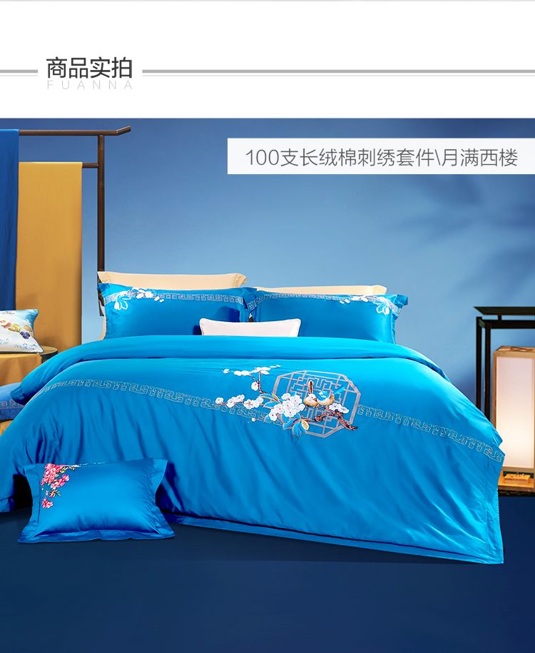富安娜 床单四件月满西楼1.8床 8110040894165 230*229cm 蓝色(单位:套)