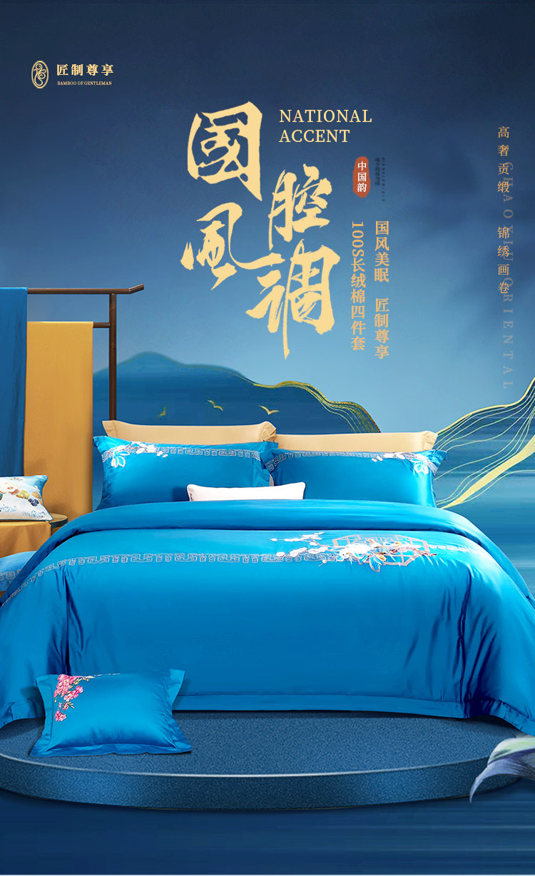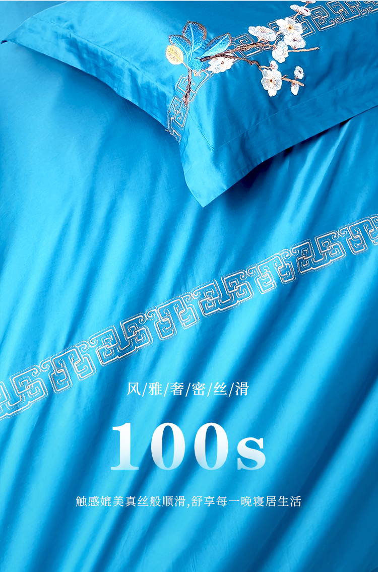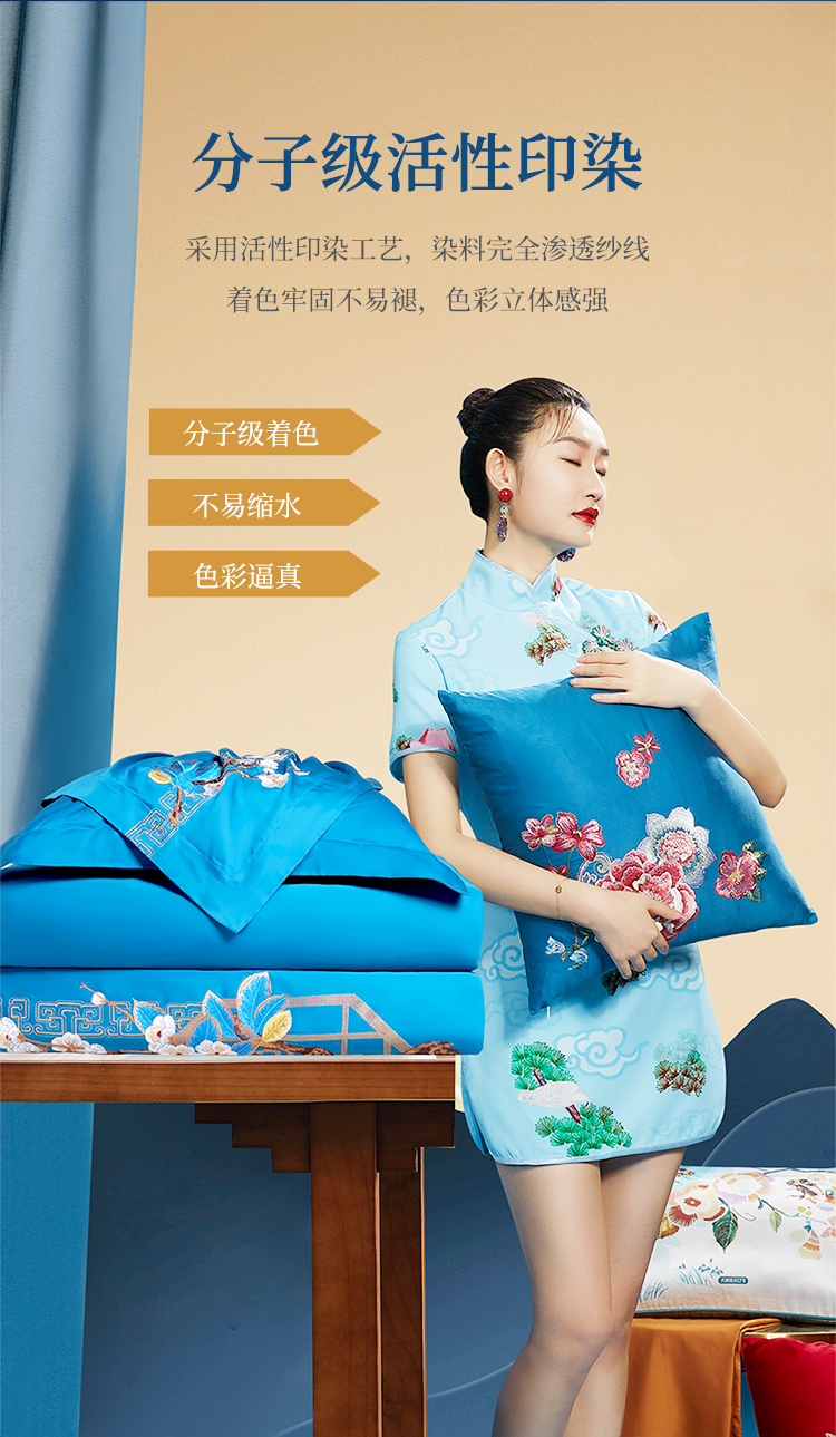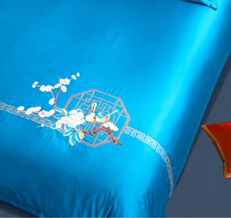 富安娜 床单四件月满西楼1.8床 8110040894165 230*229cm 蓝色(单位:套)