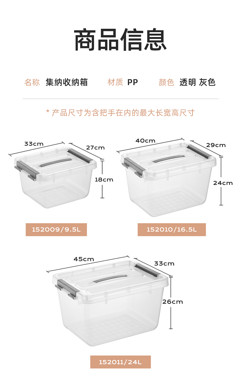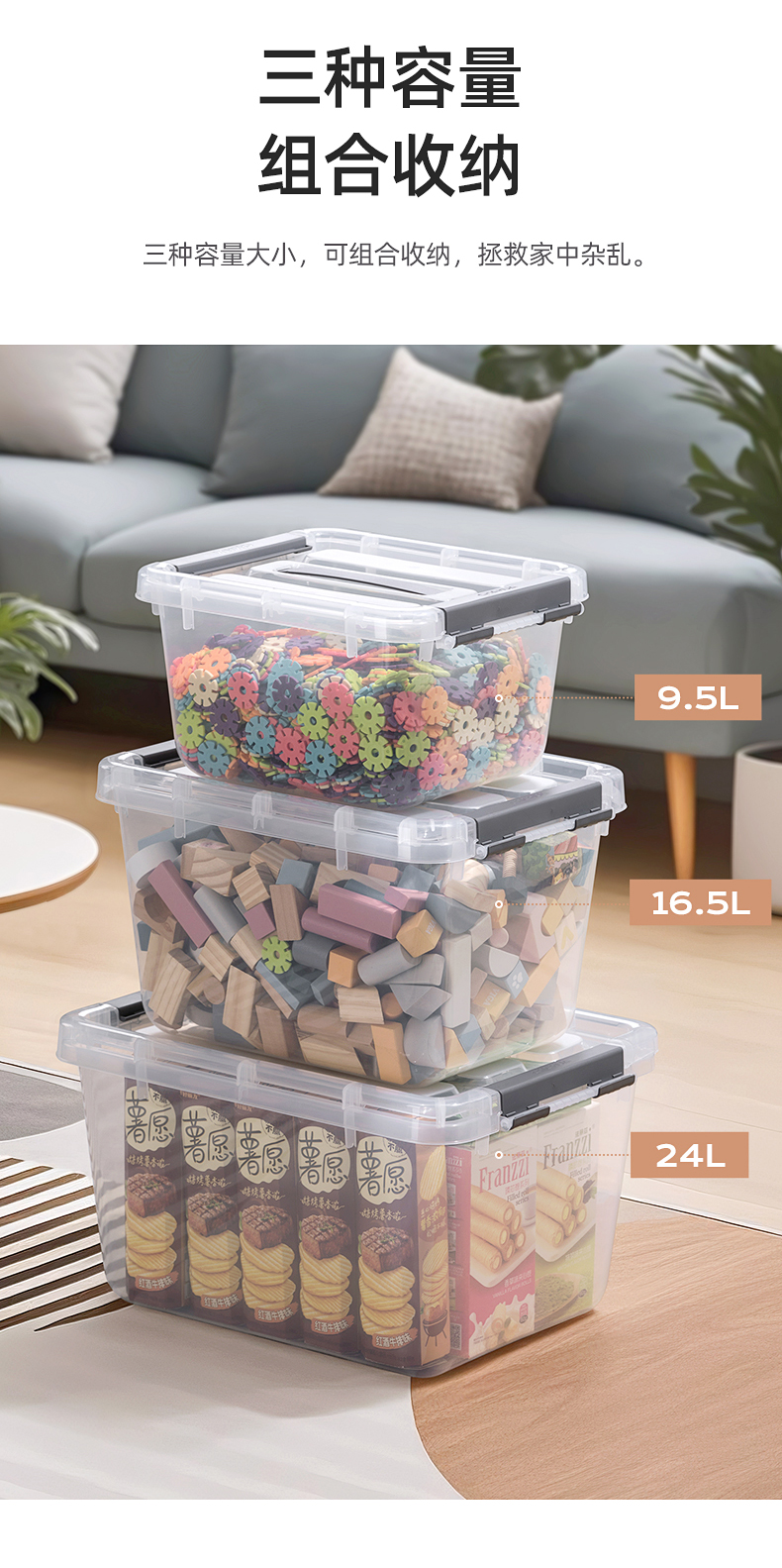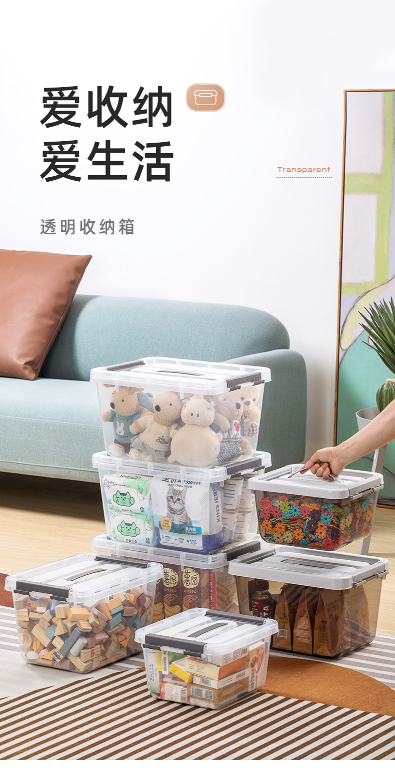 茶花(CHAHUA) 集纳透明收纳箱 152010 40*29*24cm【1个装】 混色【16.5】(单位:个)
