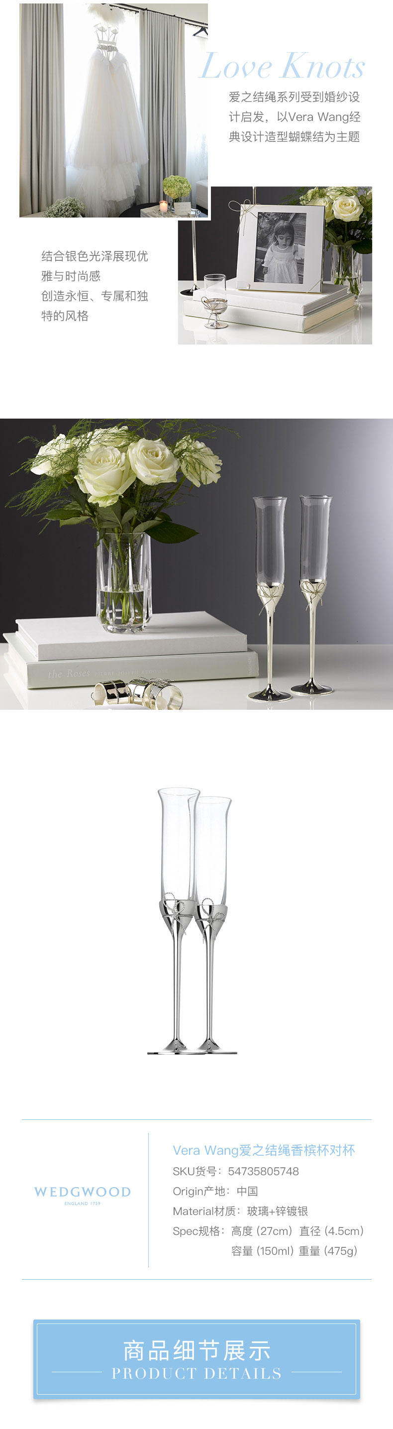 WEDGWOOD 王薇薇爱之结绳香槟杯对杯 54735805748 150ml*2 银色(单位:套)