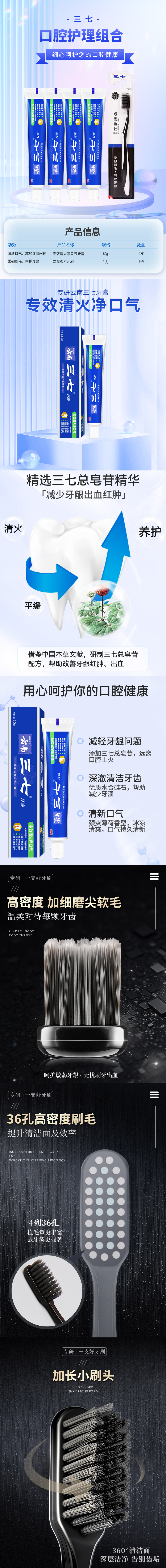 三七 牙膏 专效清火净口气 60g*4支 炭黑柔丝独立包装牙刷 SQ109*1支 混色(单位:套)