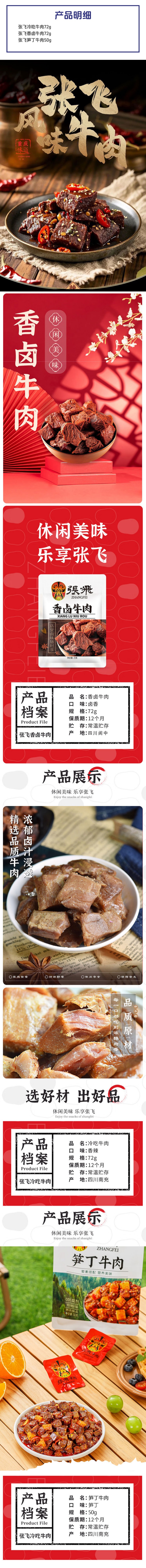 张飞 冷吃香卤笋丁牛肉 休闲零食组合 72g/包*2/50g/包*1 混色(单位:组)