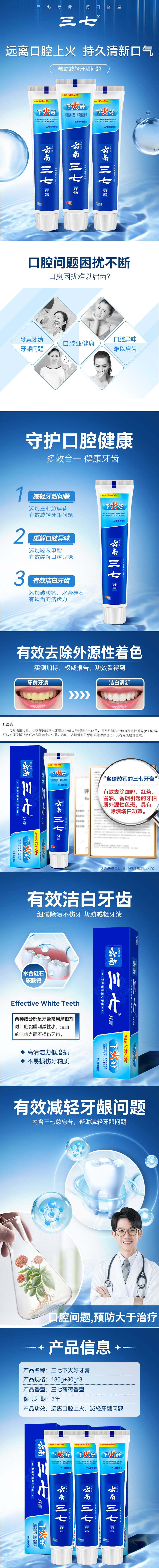 三七 牙膏 下火好 180g+30g*3支 宝石蓝(单位:组)