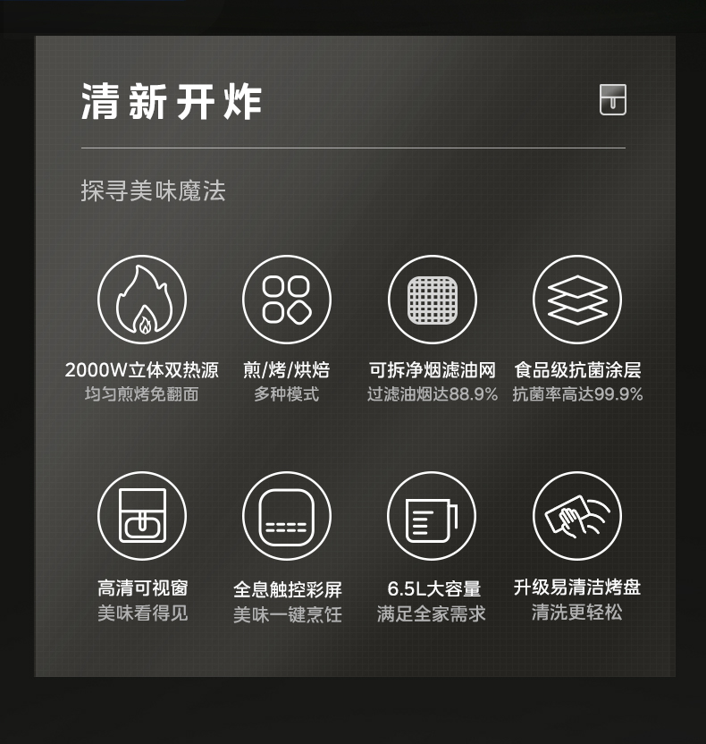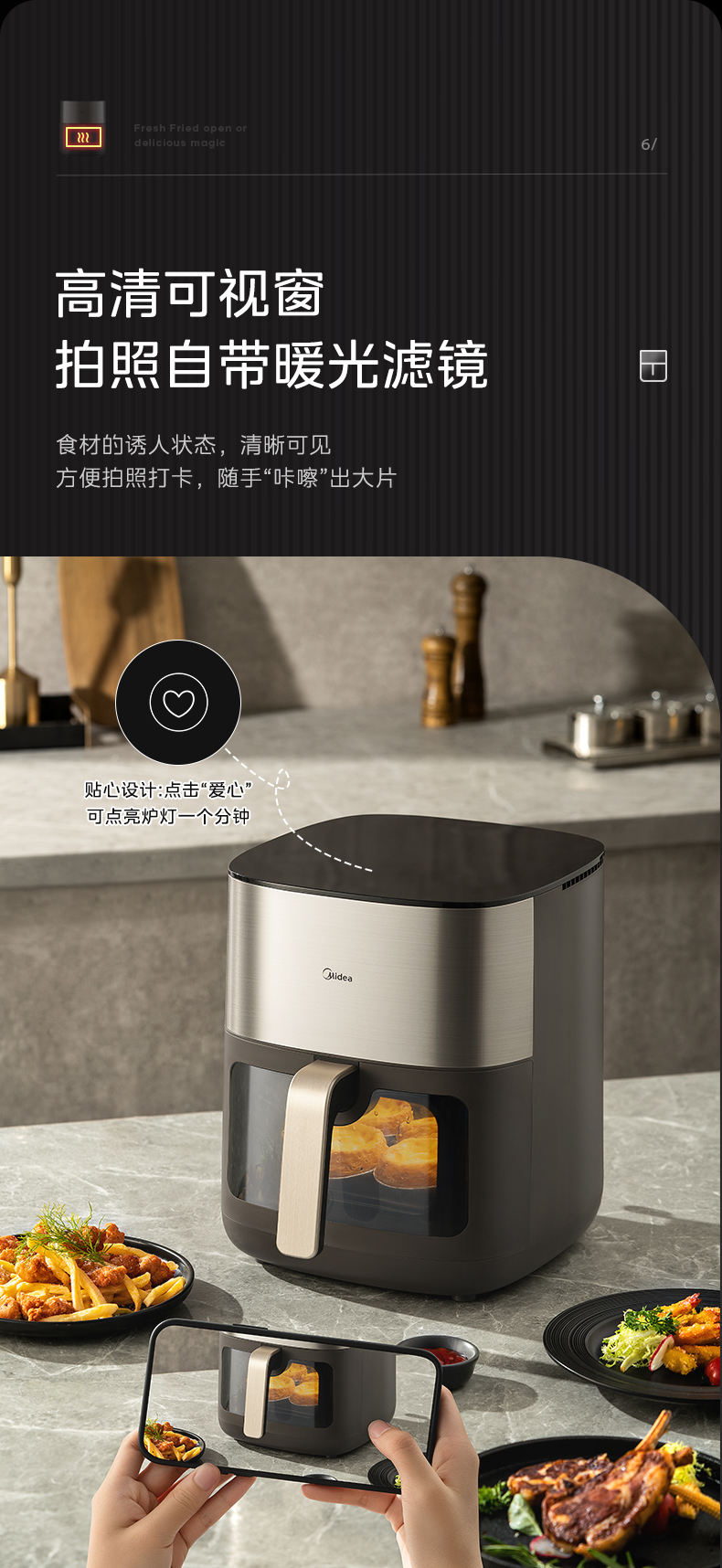 美的(Midea) 炎烤双热源 实用大容量 透明可视 空气炸锅 MF-KZC6502 6.5L 黑色(单位:台)