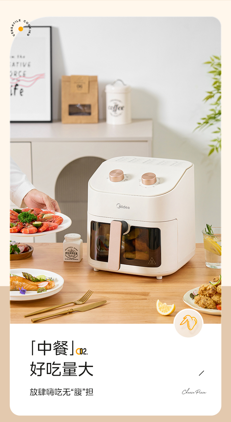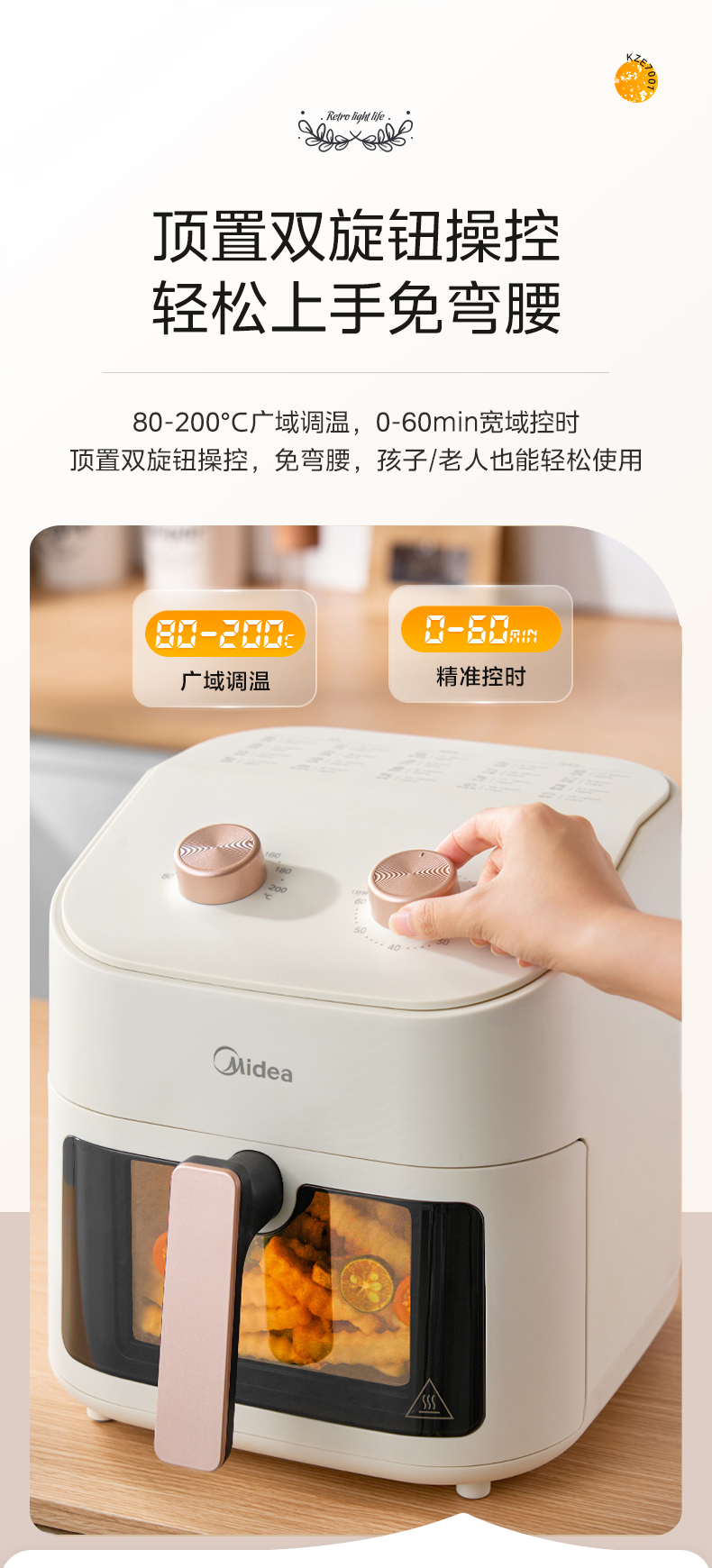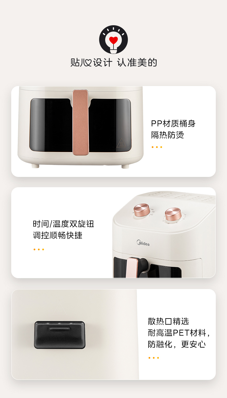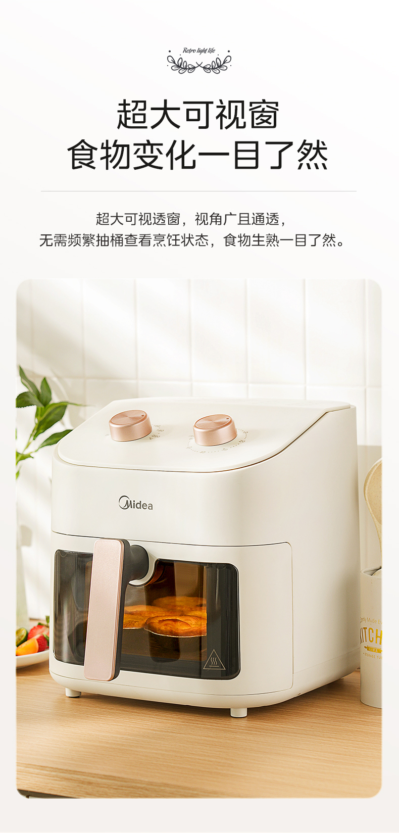 美的(Midea) 双旋钮控温调时可视 空气炸锅 MF-KZE7001 7L 白色(单位:台)