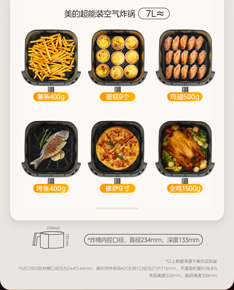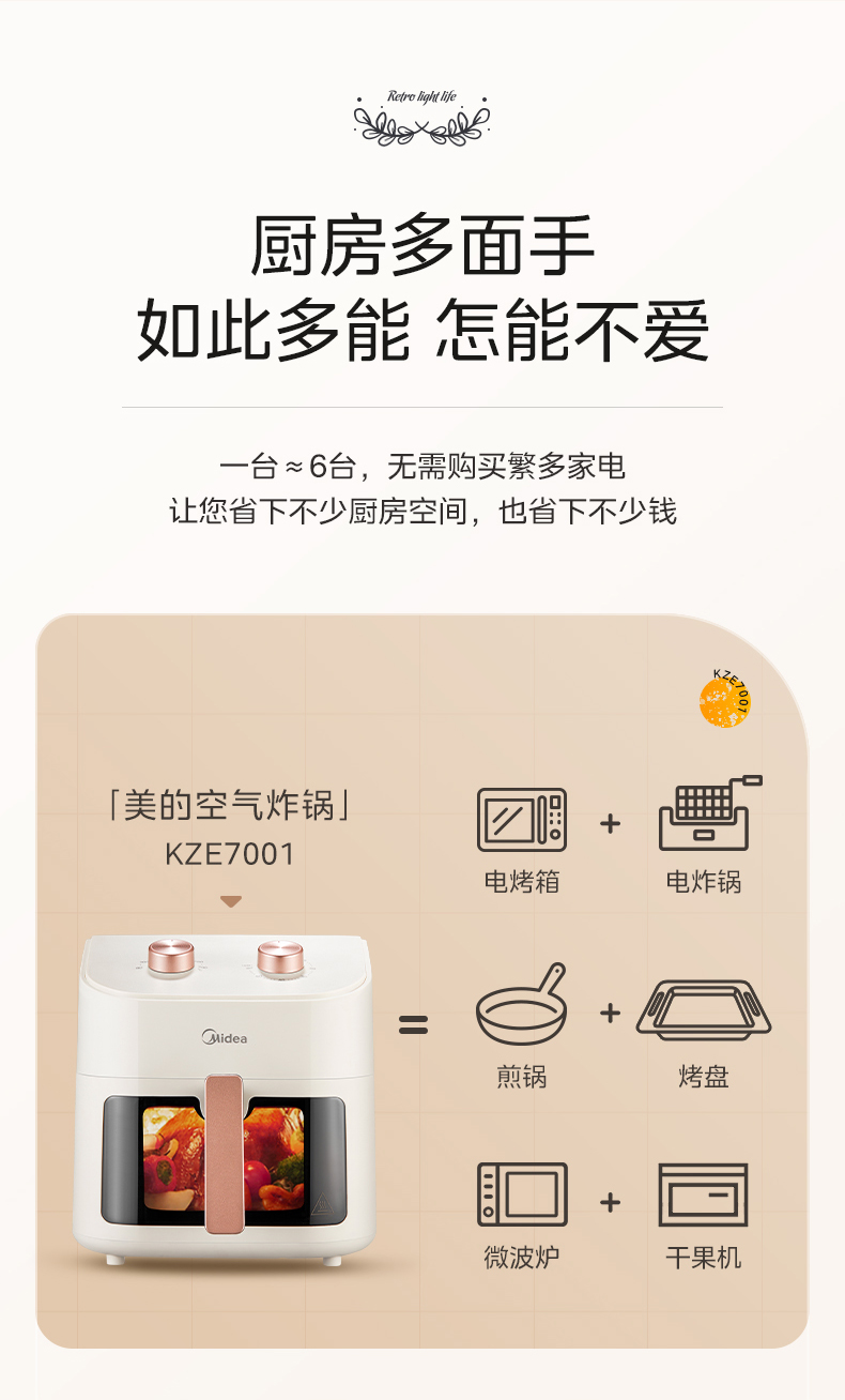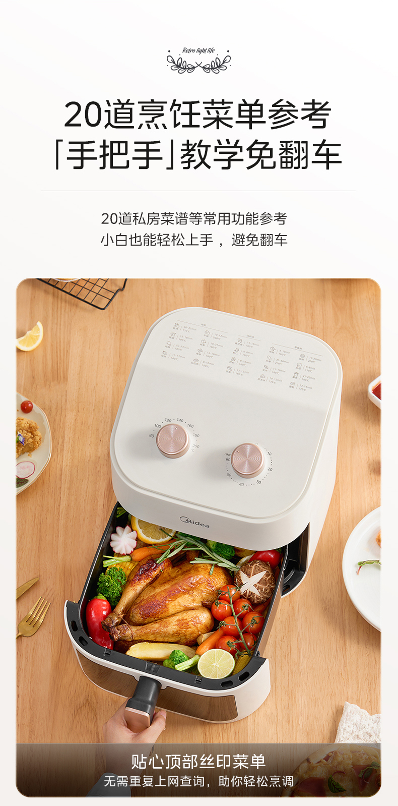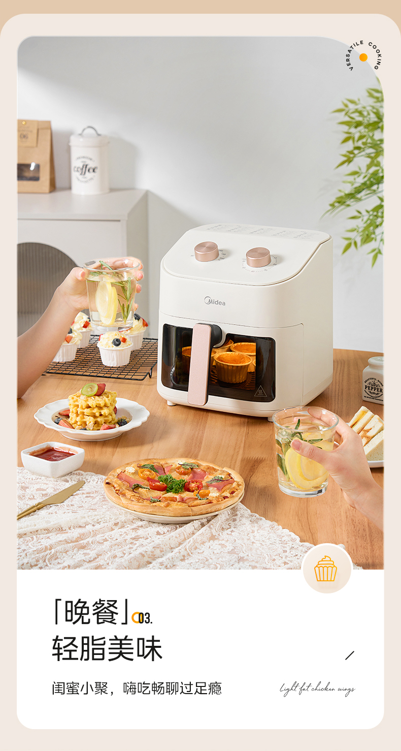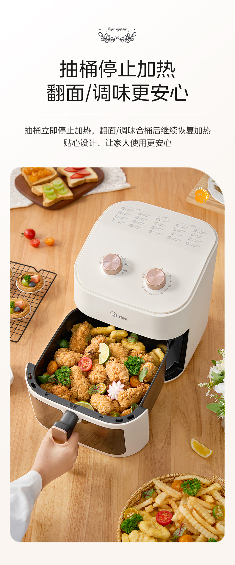 美的(Midea) 双旋钮控温调时可视 空气炸锅 MF-KZE7001 7L 白色(单位:台)